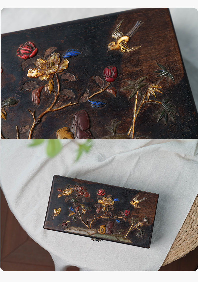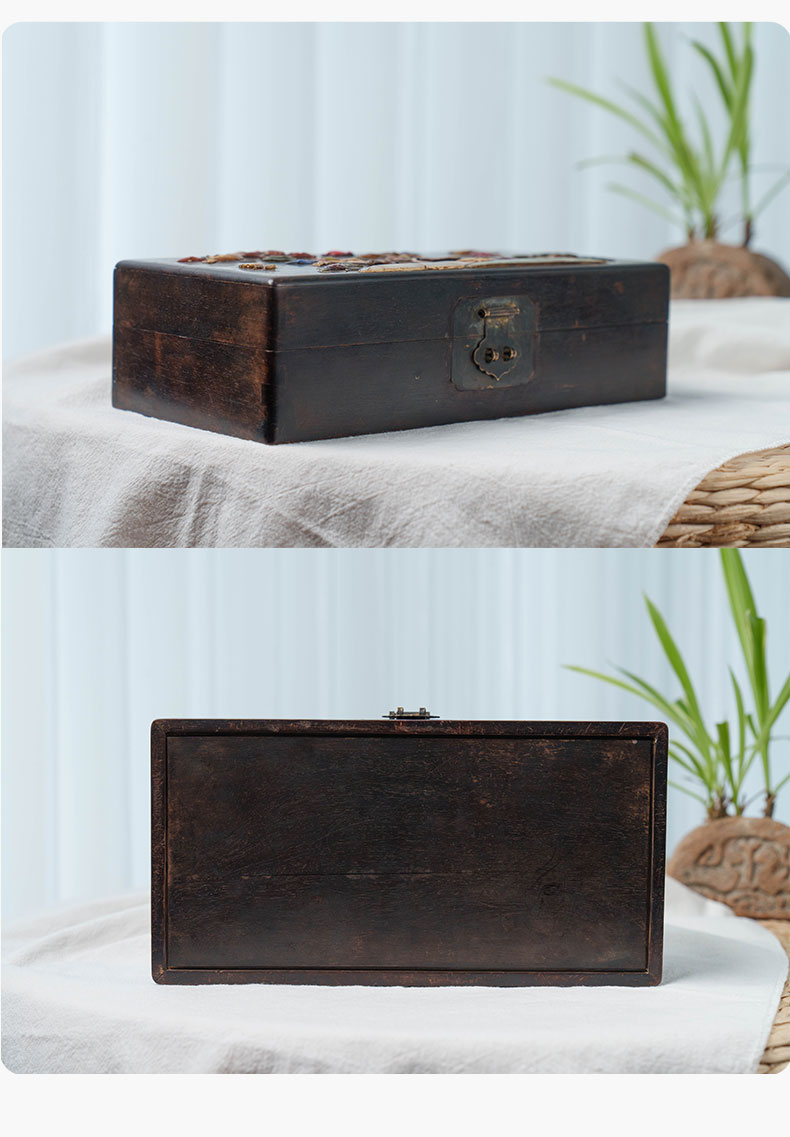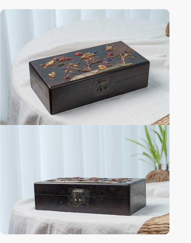 清 黄花梨镶绿石透雕螭龙纹大插屏