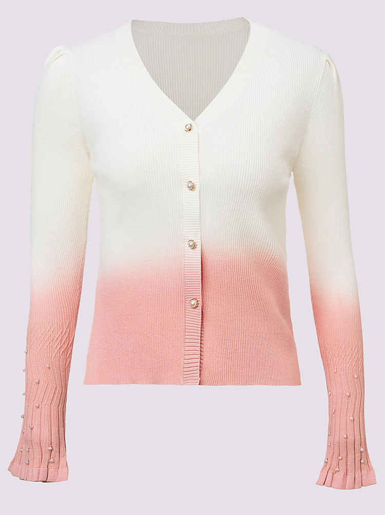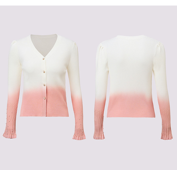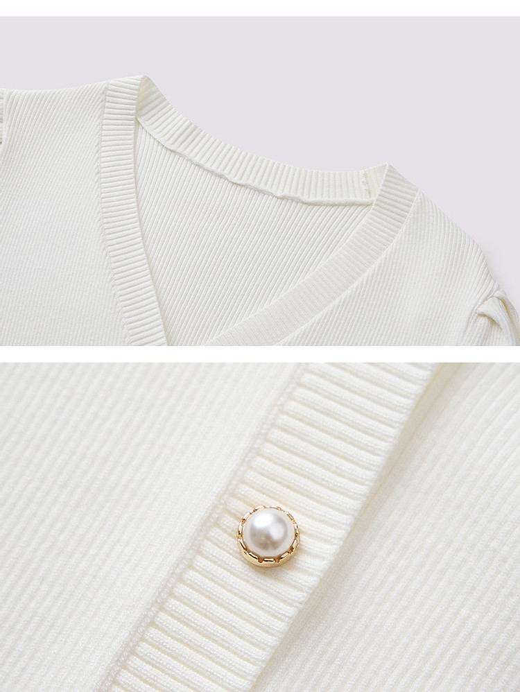 复古少女感珍珠扣喇叭袖针织开衫外套(货号:MF86JA002E0002)