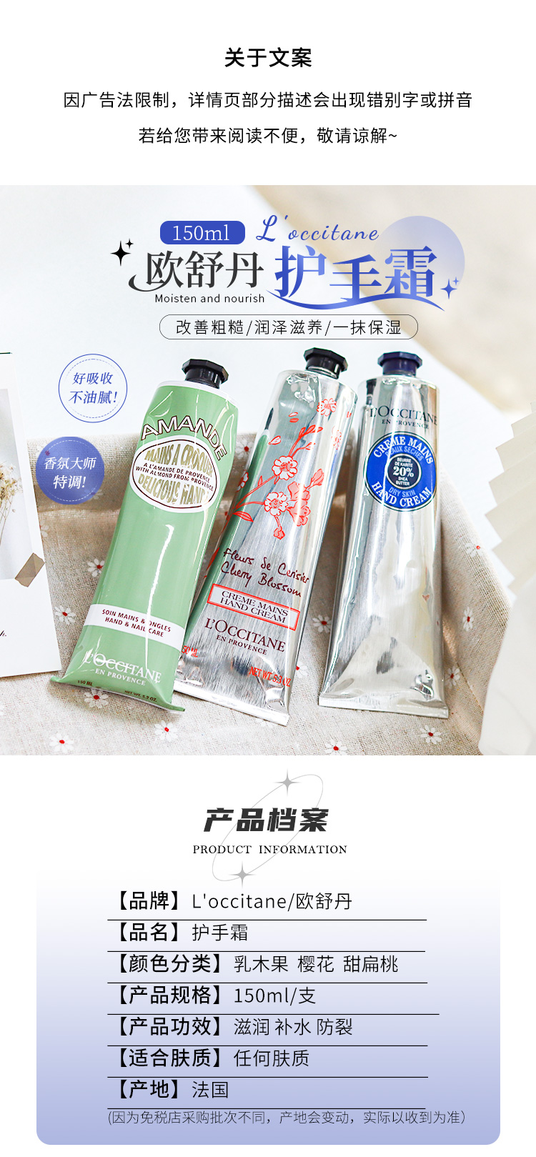 原价260 巨划算!大容量!欧舒丹乳木果护手霜150ml保湿滋润手部护理