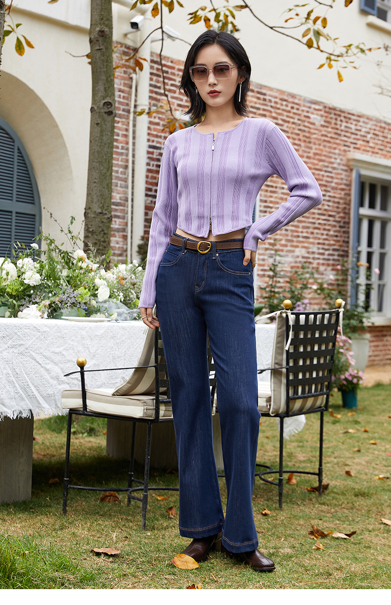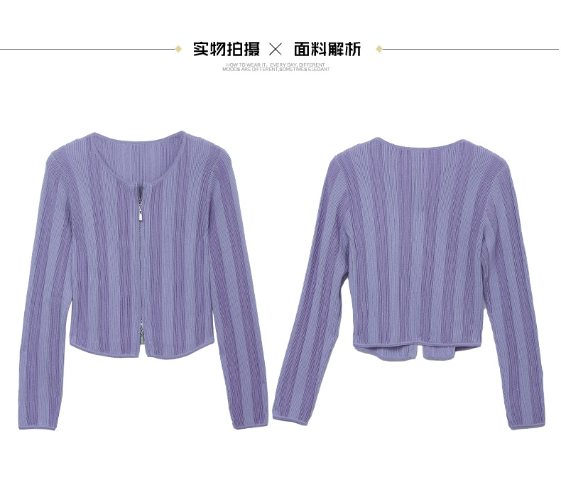 早秋时髦精挚爱!拉链修身坑条毛衫,温柔紫调超显白