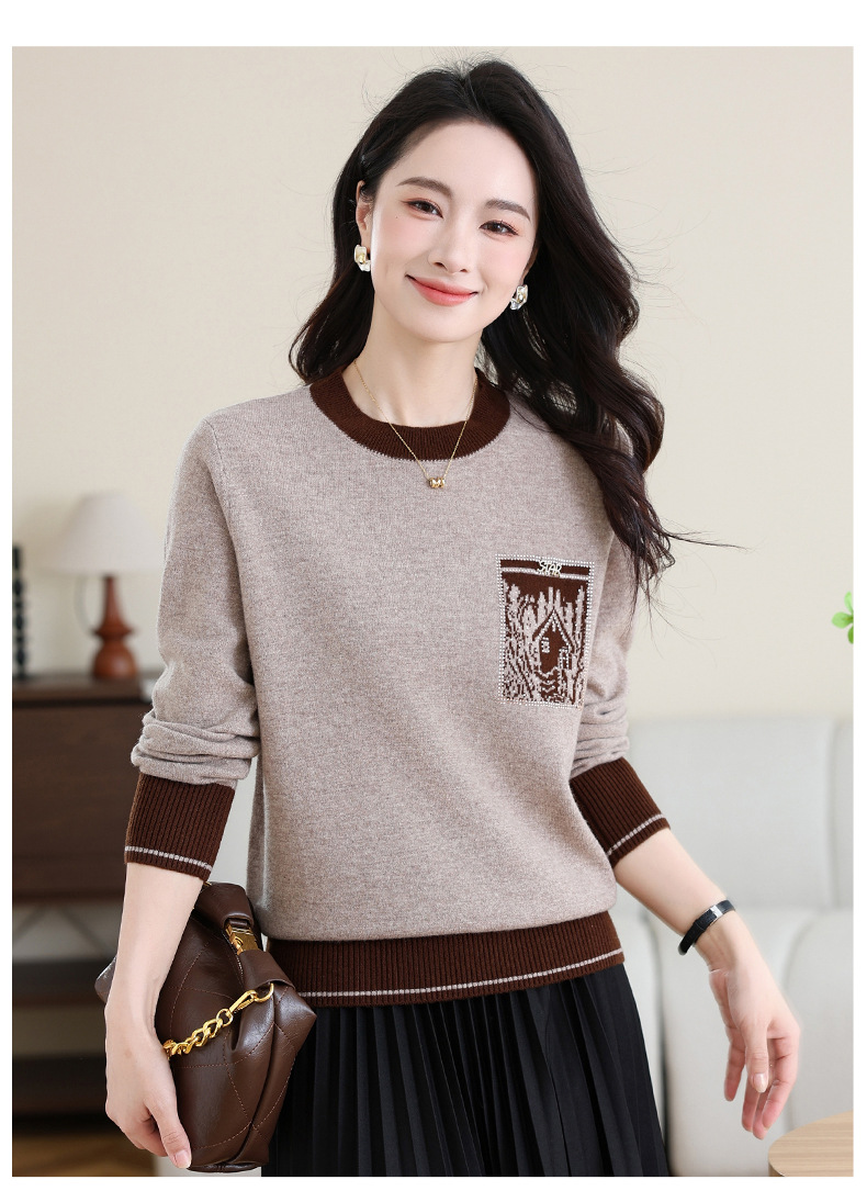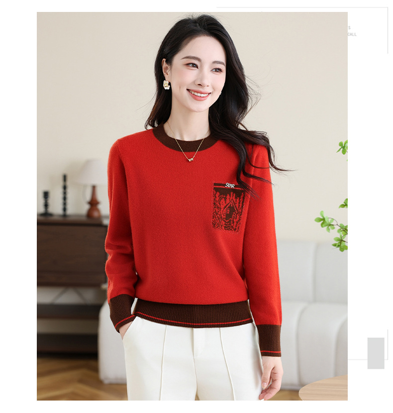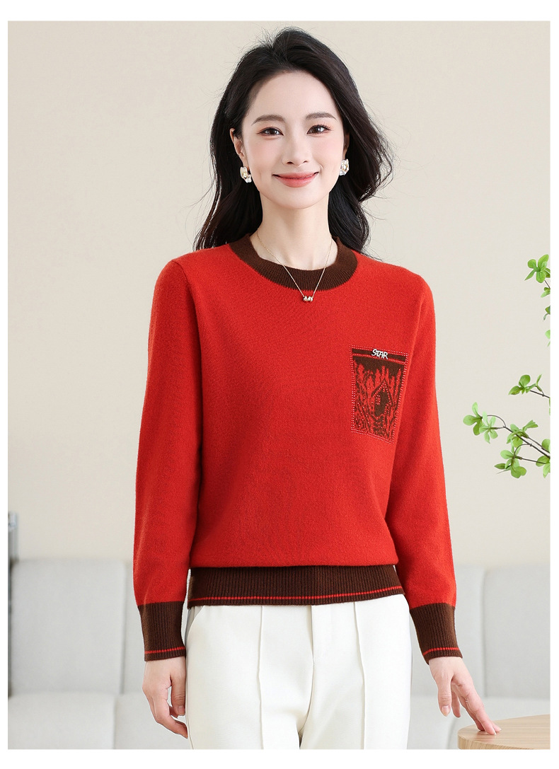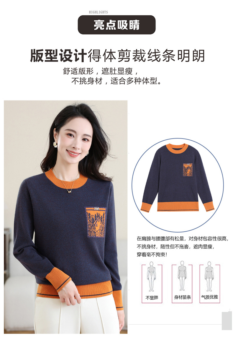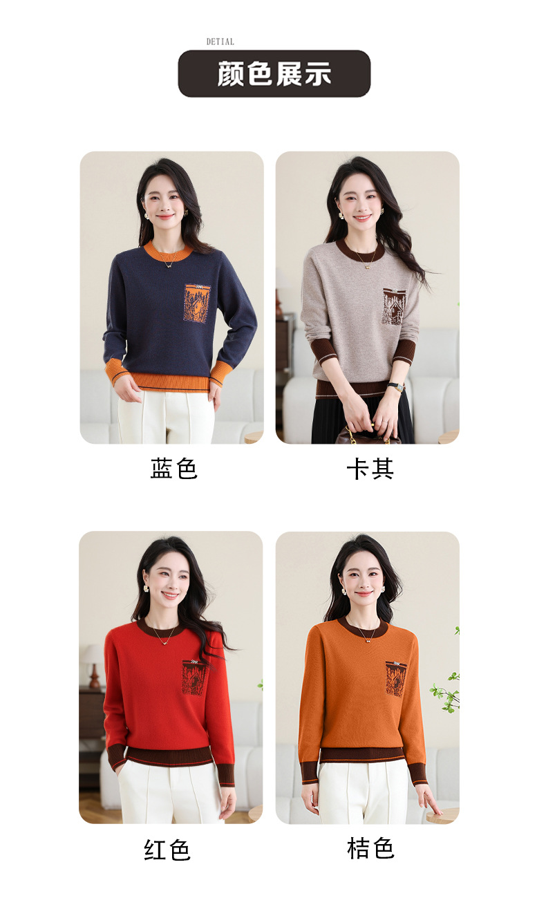 CC-MH-333女士100纯羊毛衫新款2024秋冬季针织打底衫内搭圆领上衣妈妈毛衣