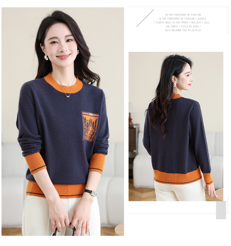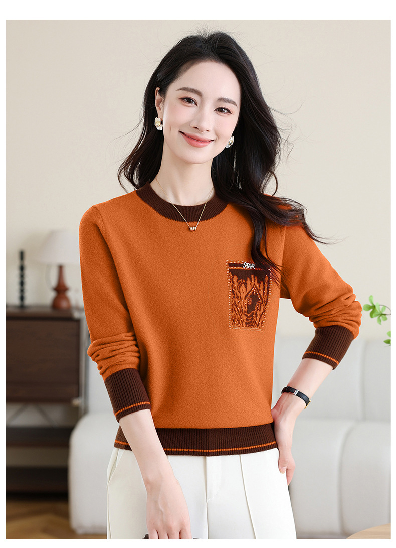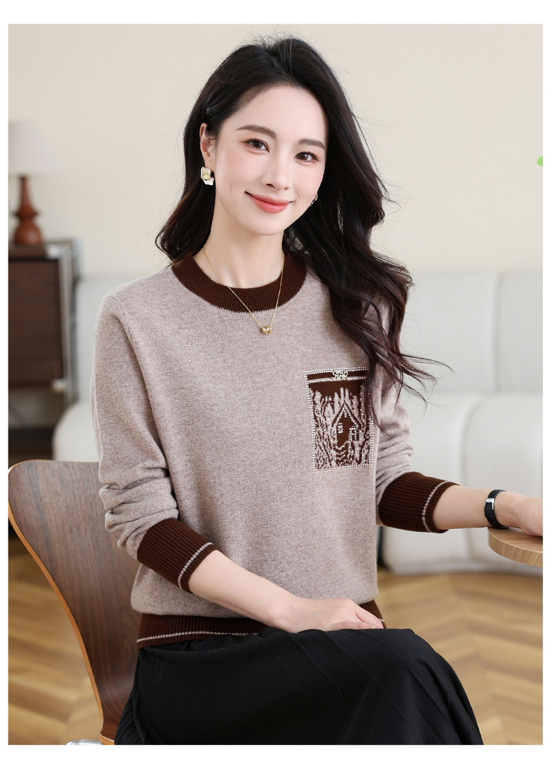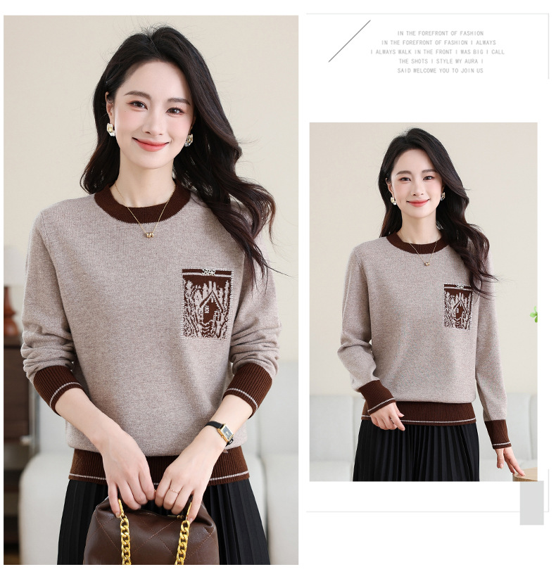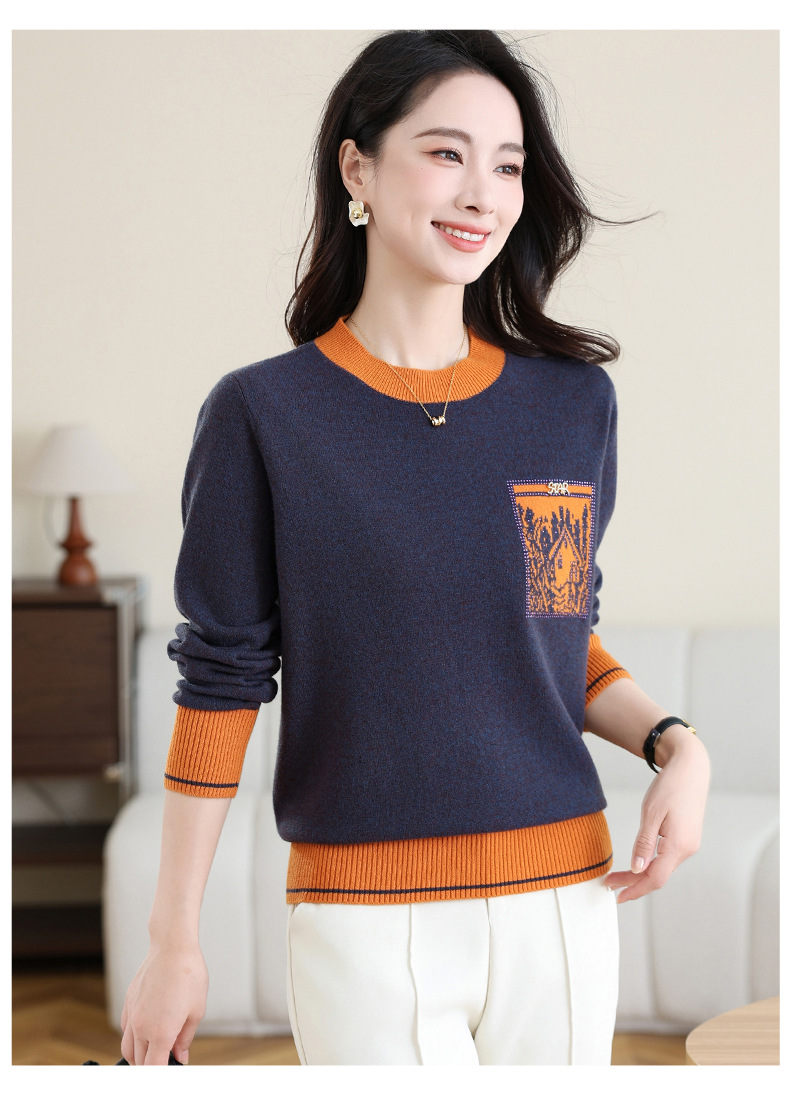 CC-MH-333女士100纯羊毛衫新款2024秋冬季针织打底衫内搭圆领上衣妈妈毛衣