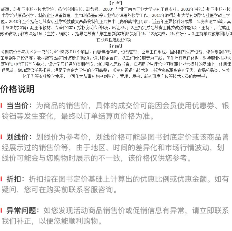 正版书籍 制药设备与技术 胡颖、沈珺 主编化学工业出版社9787122399021 58.00