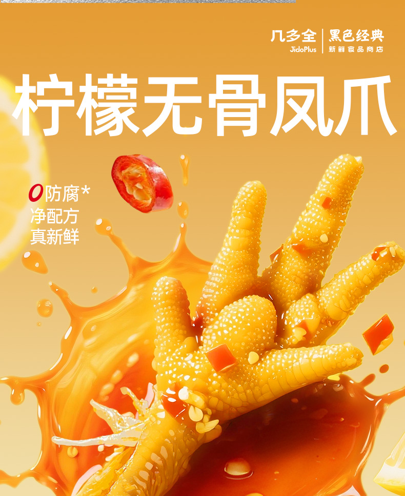 【鲜食顺丰配送】黑色经典柠檬无骨凤爪308g/盒 保质期7天,到手约4-5天,到货当天取件食用,介意慎拍