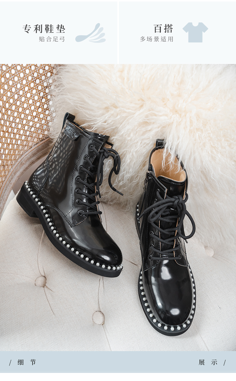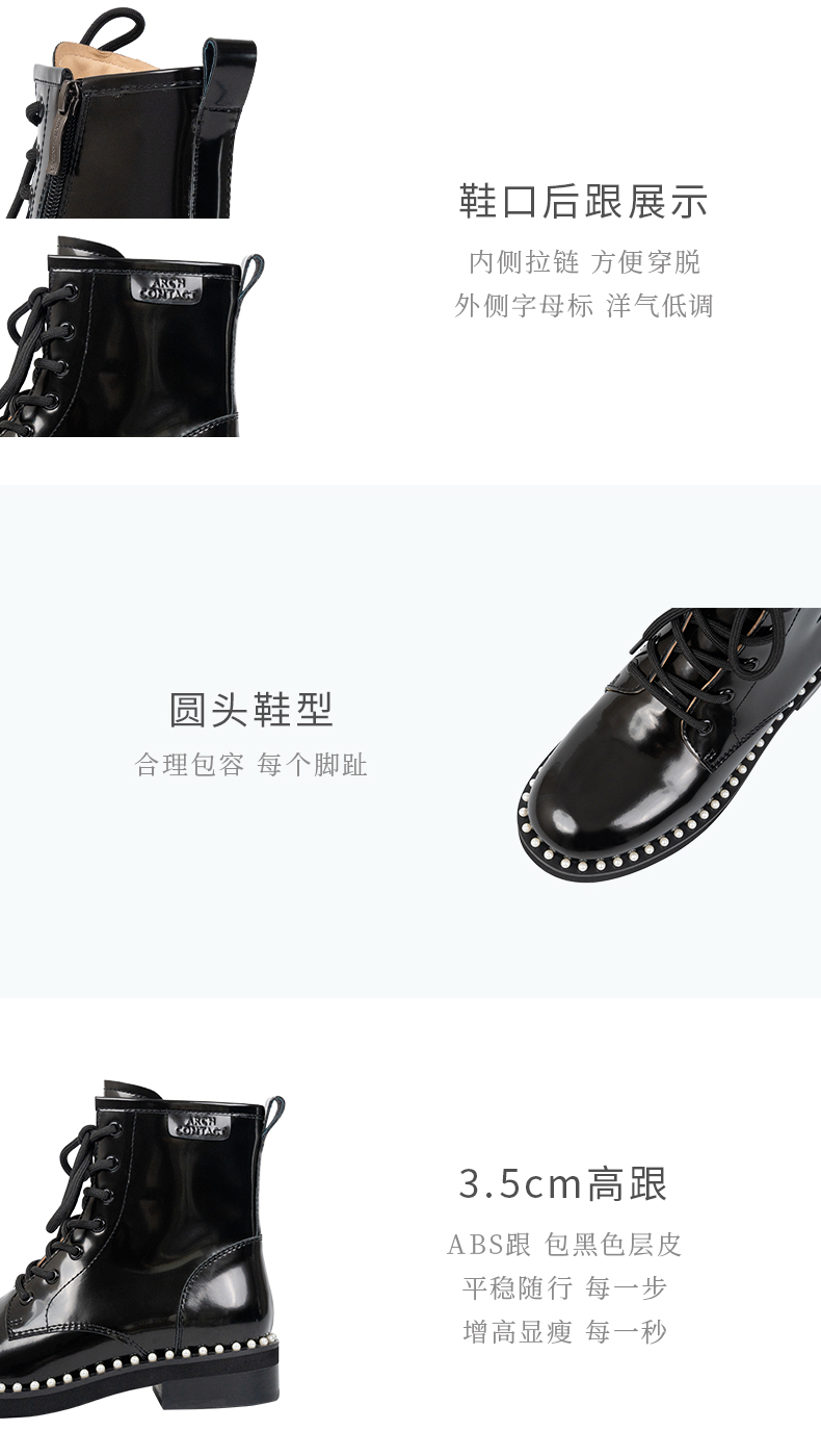 软底马丁靴 | ARCHCONTACT安启美奈 圆头珍珠边52881