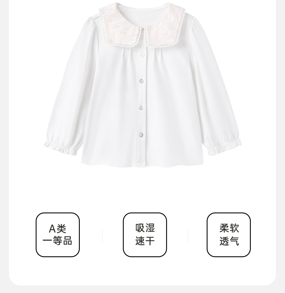 【商场同款】英氏儿童衬衫纯棉长袖女童衬衫休闲纯色上衣新款
