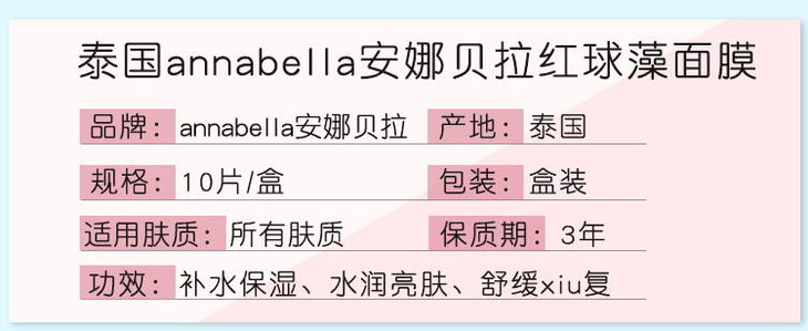 泰国Annabella安娜贝拉海藻面膜/海藻面膜黑金/红球藻面膜-10片