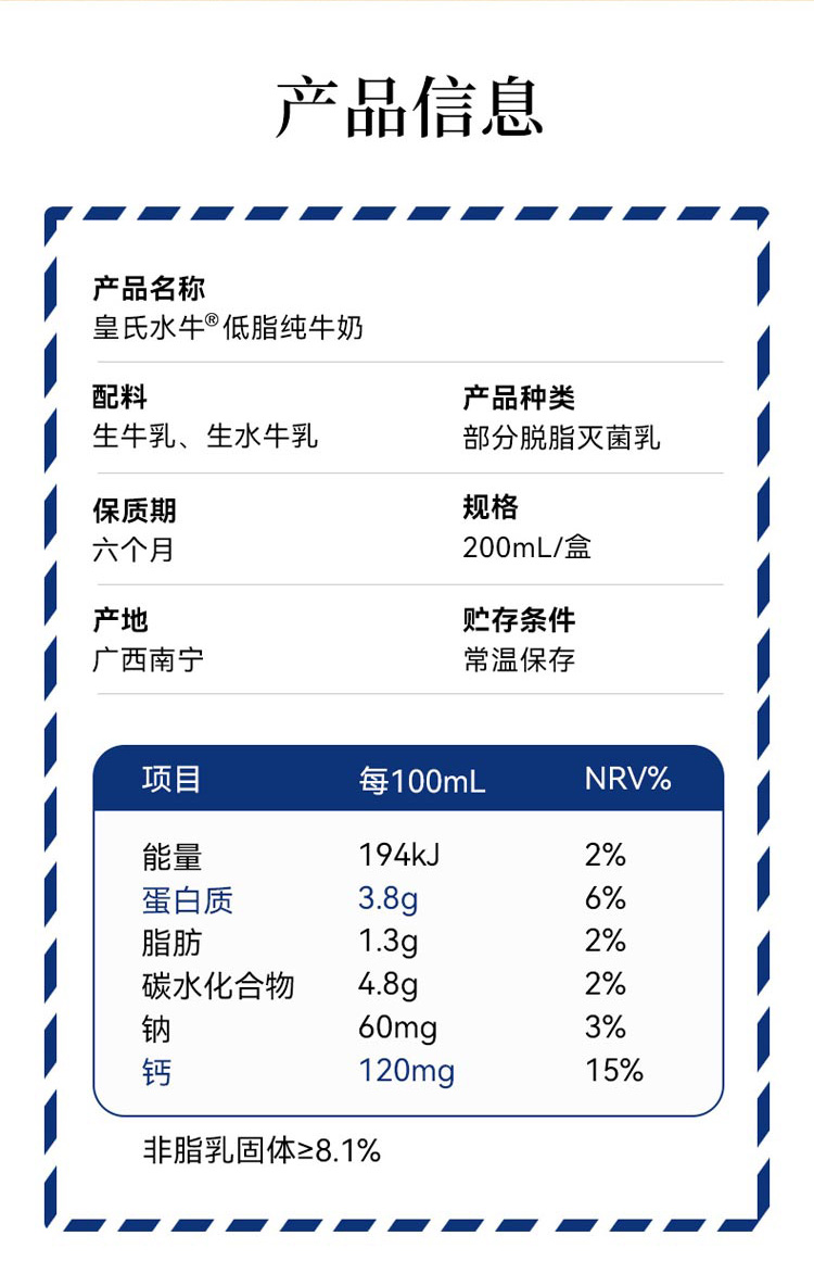 皇氏水牛低脂牛奶 添加水牛奶 健康低脂 200ML*10盒 减脂不减味 自带手提