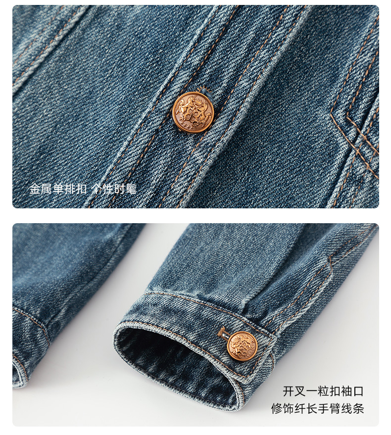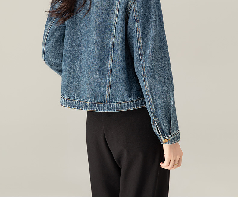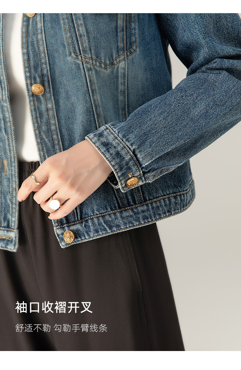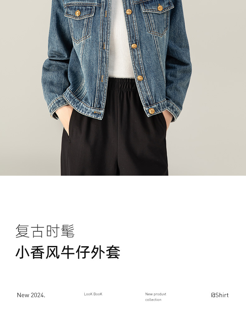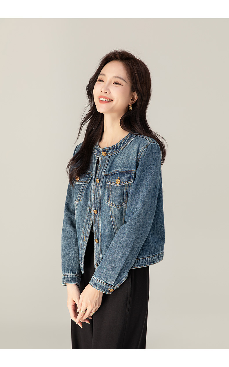 丁摩 圆领小香风牛仔外套女春秋装新款宽松复古水洗气质夹克5ZF-64668