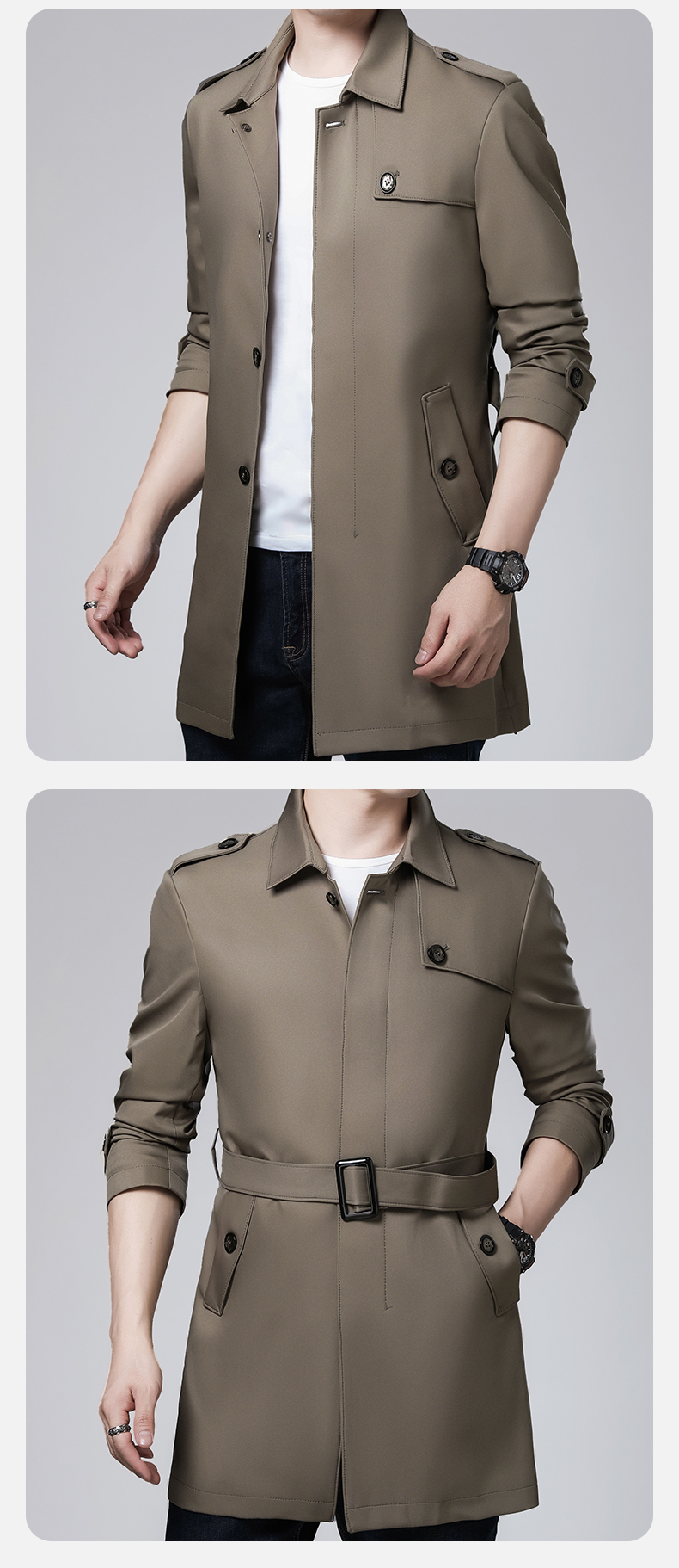 【新款DXS】大依优型中长款风衣翻领经典加肥加大码上衣外套商务休闲男士Y