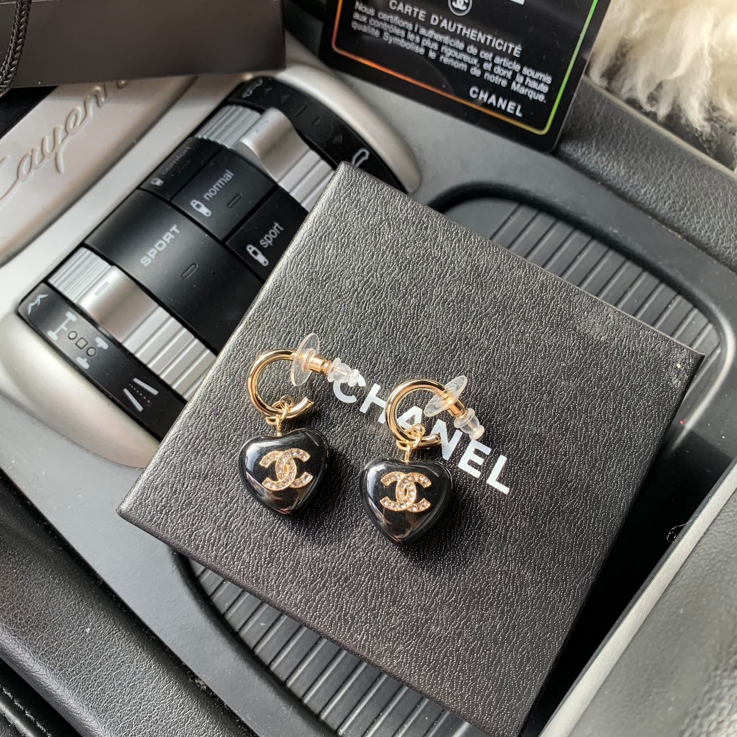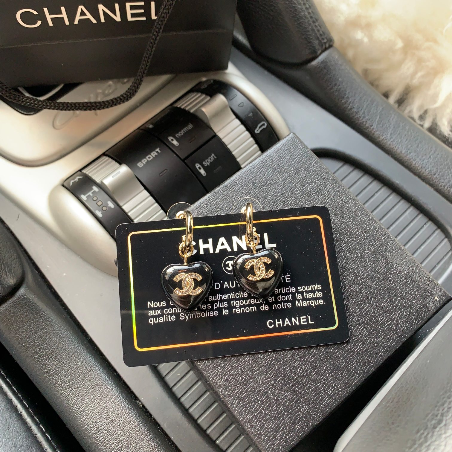 CHANRL香奈儿 🇫🇷新品双C耳勾❤️❤️吊坠 爱心里包双C镶钻 超级精致 大小适中 非常日常百搭的一款 一眼爱上 💖💖自留自留 美美哒 专柜正品一致 黄铜材质 925银针(防过敏体质者) ❤️❤️