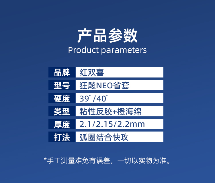 红双喜狂飚3NEO省套套胶具有以下性能特点: