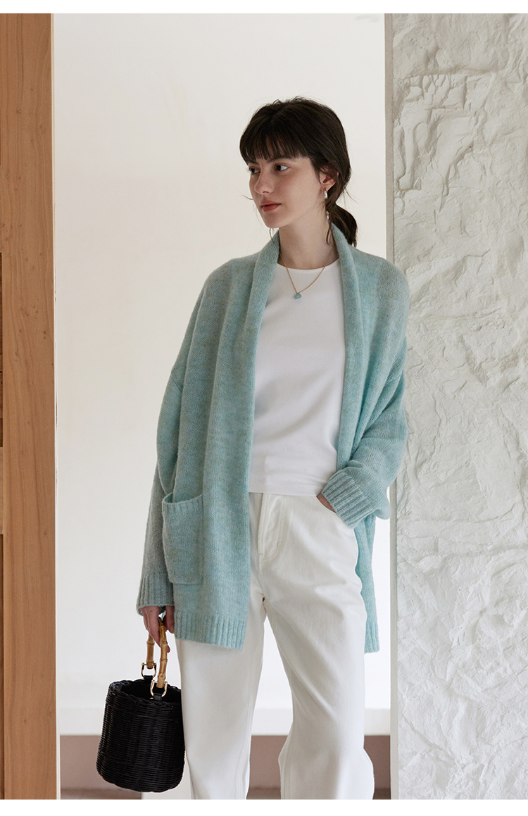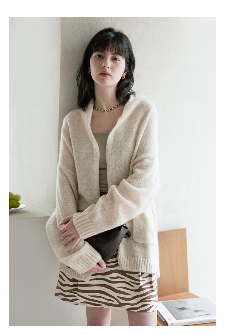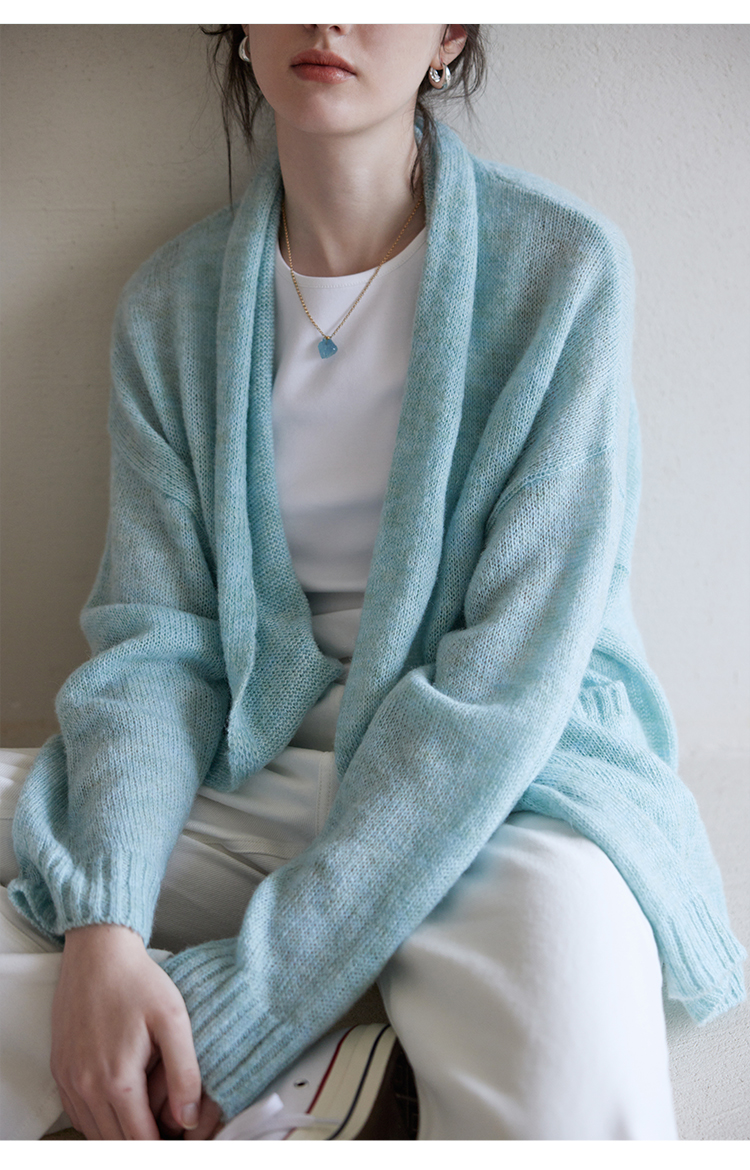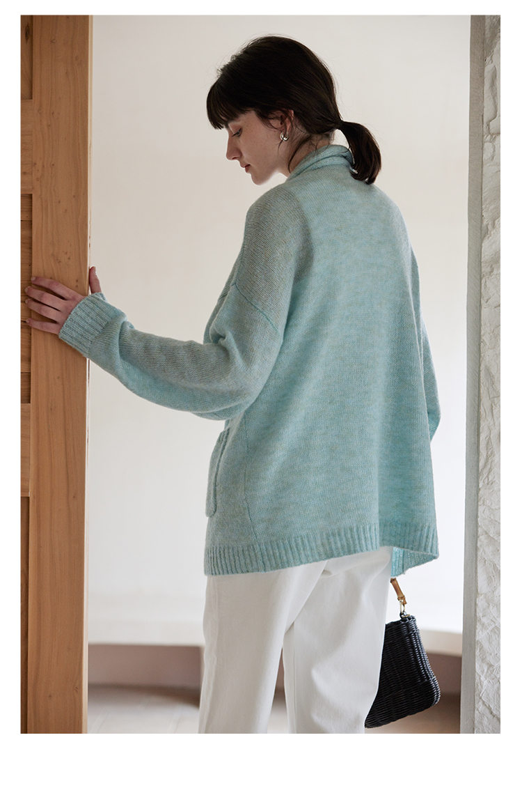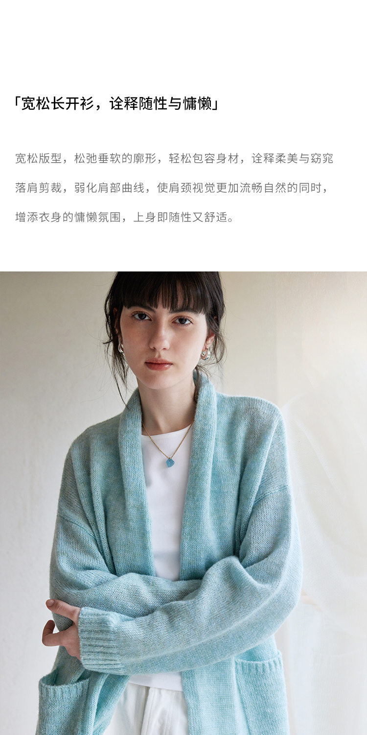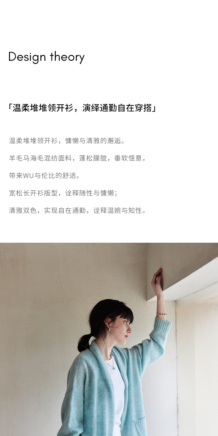 HeyDress马海毛开衫女春季法式宽松慵懒感堆堆领外套温柔气质上衣