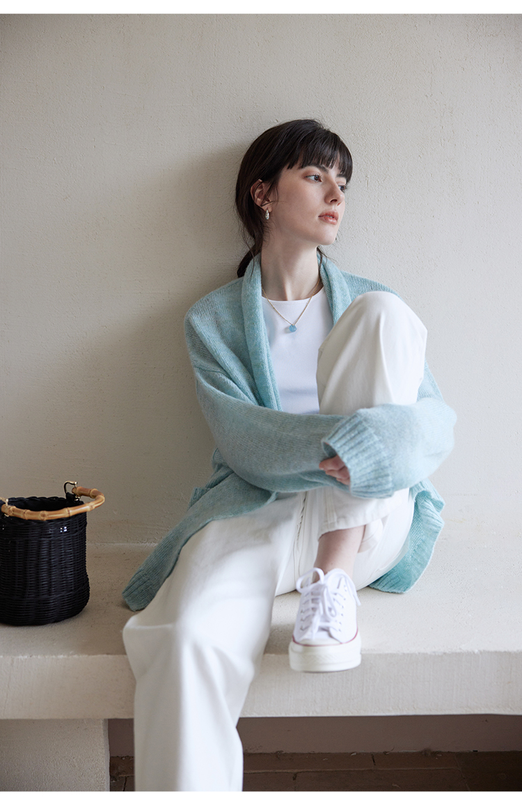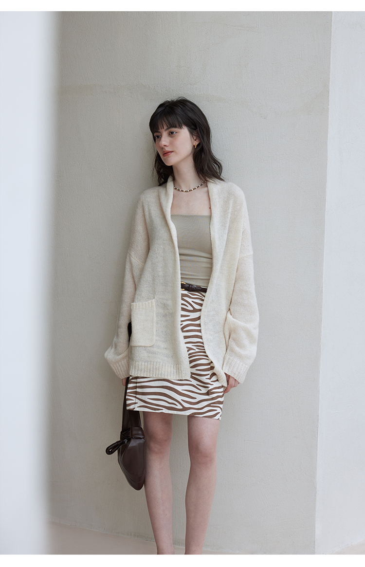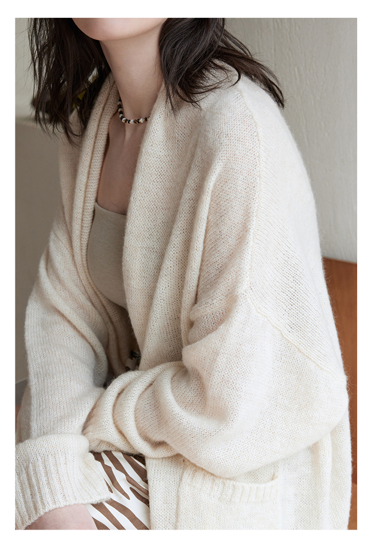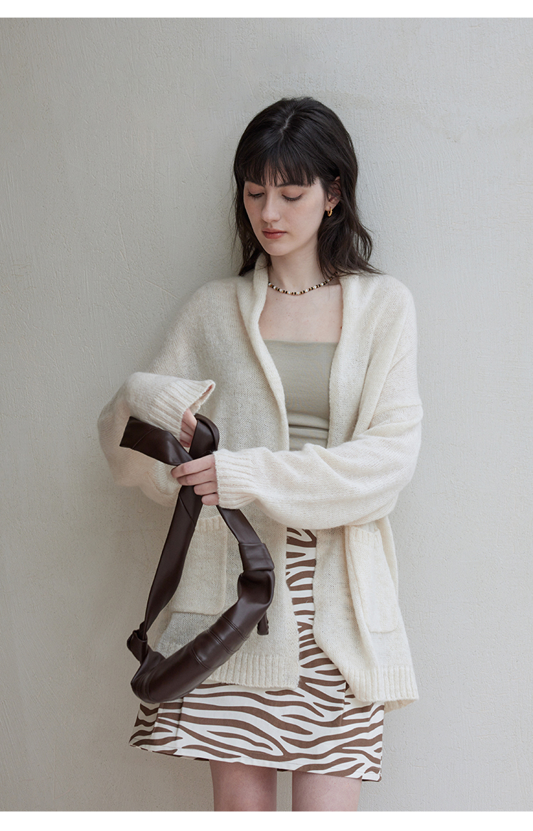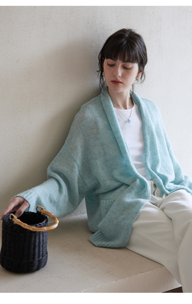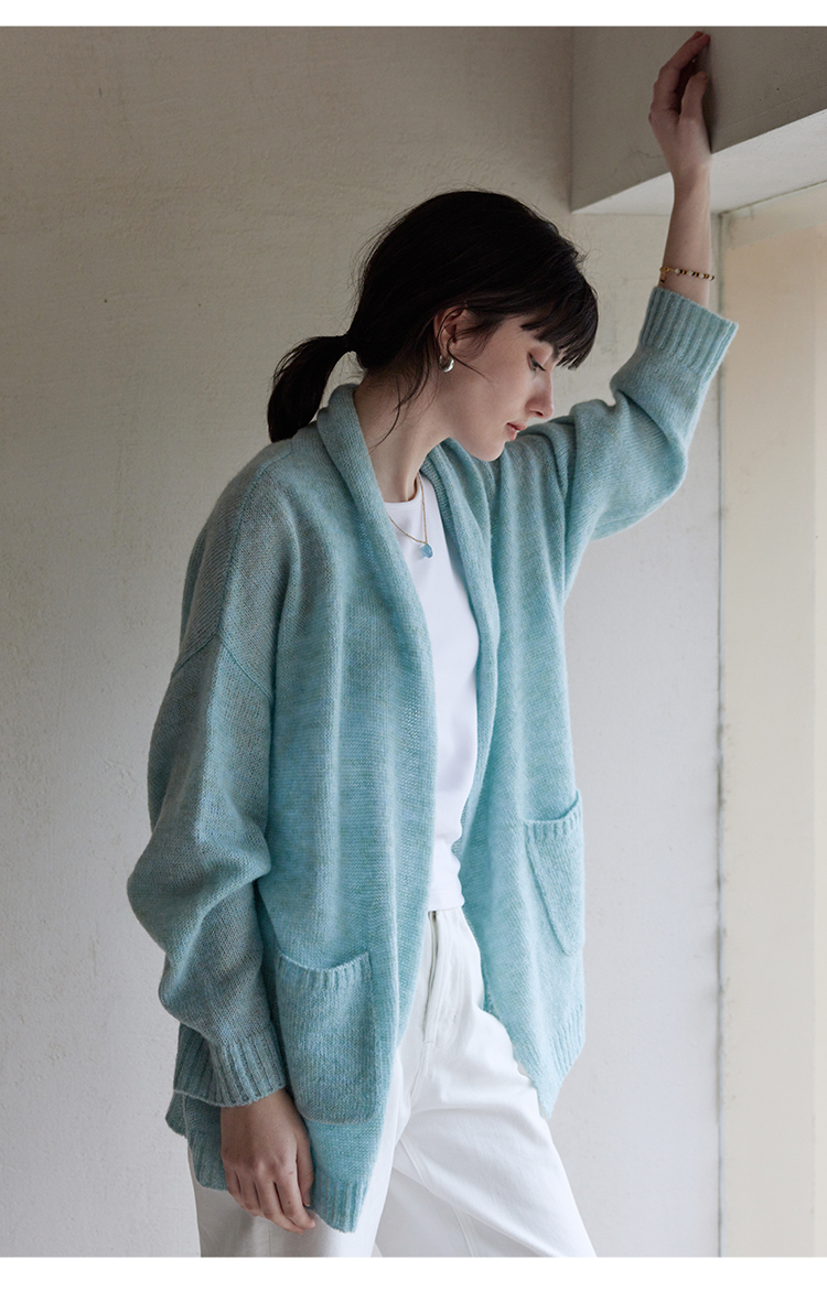 HeyDress马海毛开衫女春季法式宽松慵懒感堆堆领外套温柔气质上衣