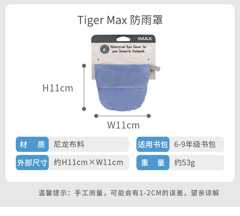 tigerfamily虎米 儿童书包套小学生防雨罩防脏耐磨双肩背包套