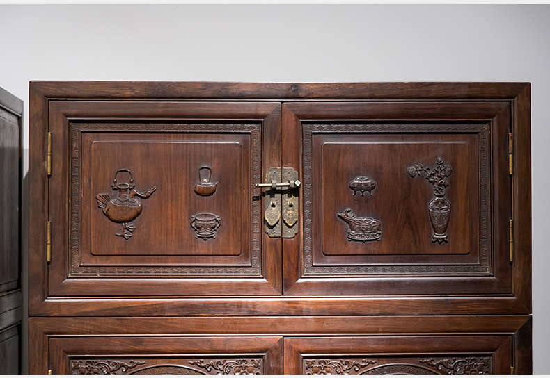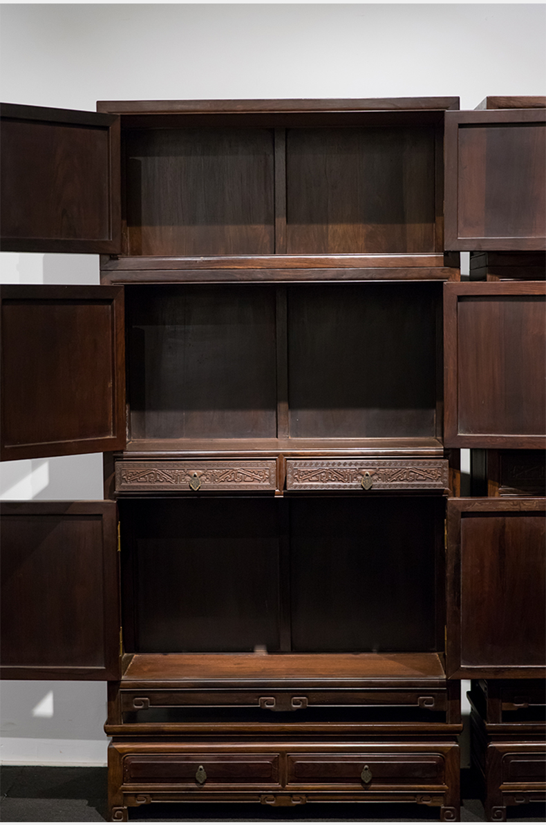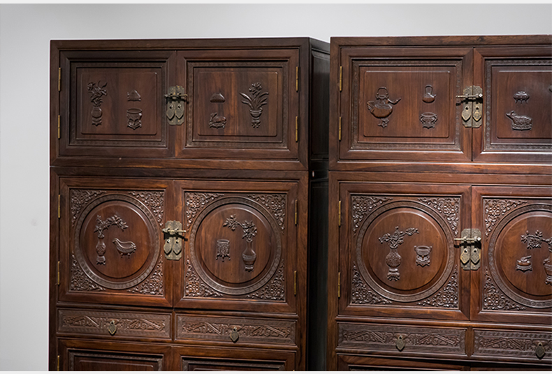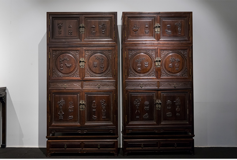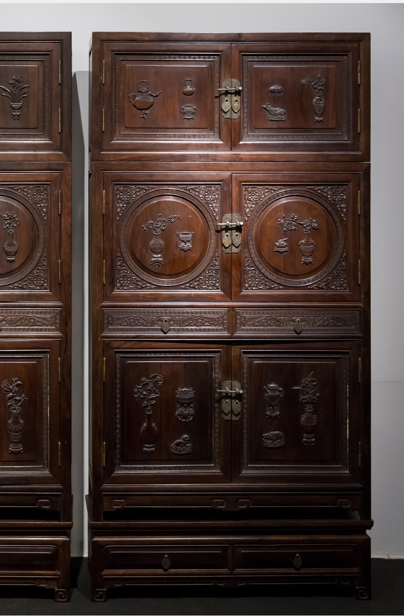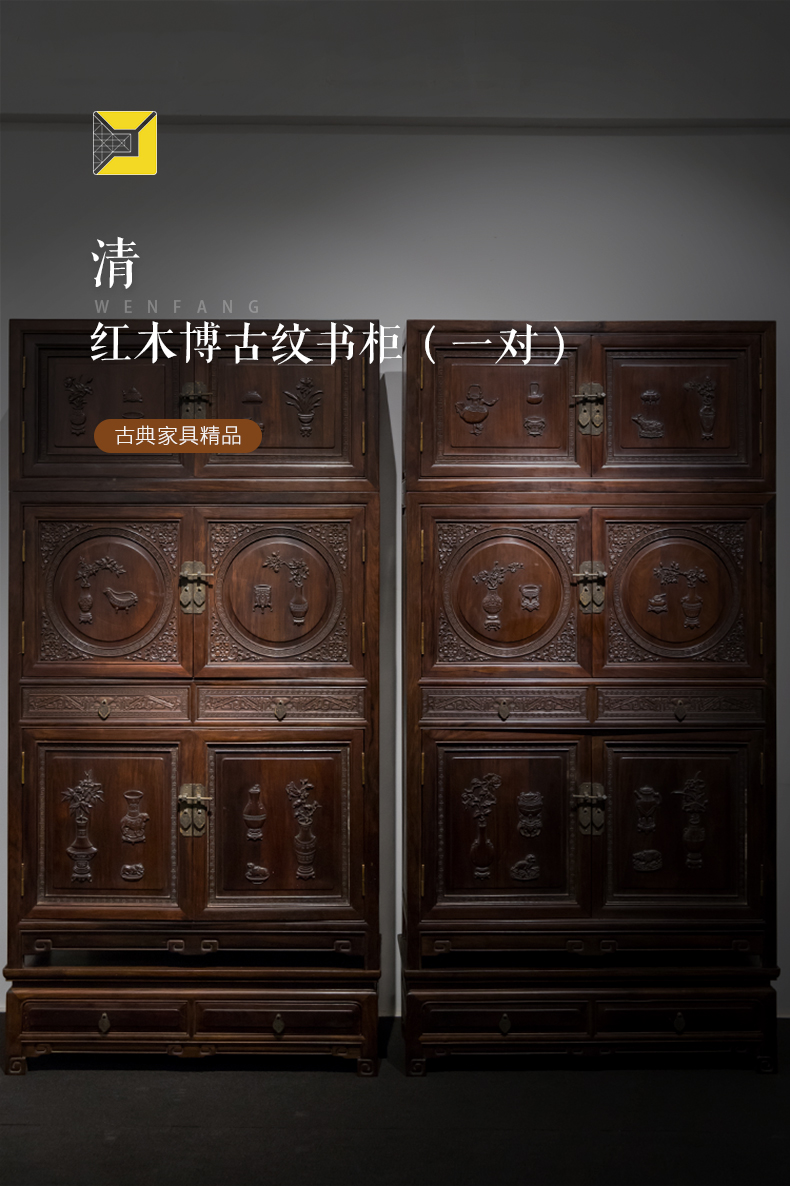 清 红木博古纹书柜(一对)