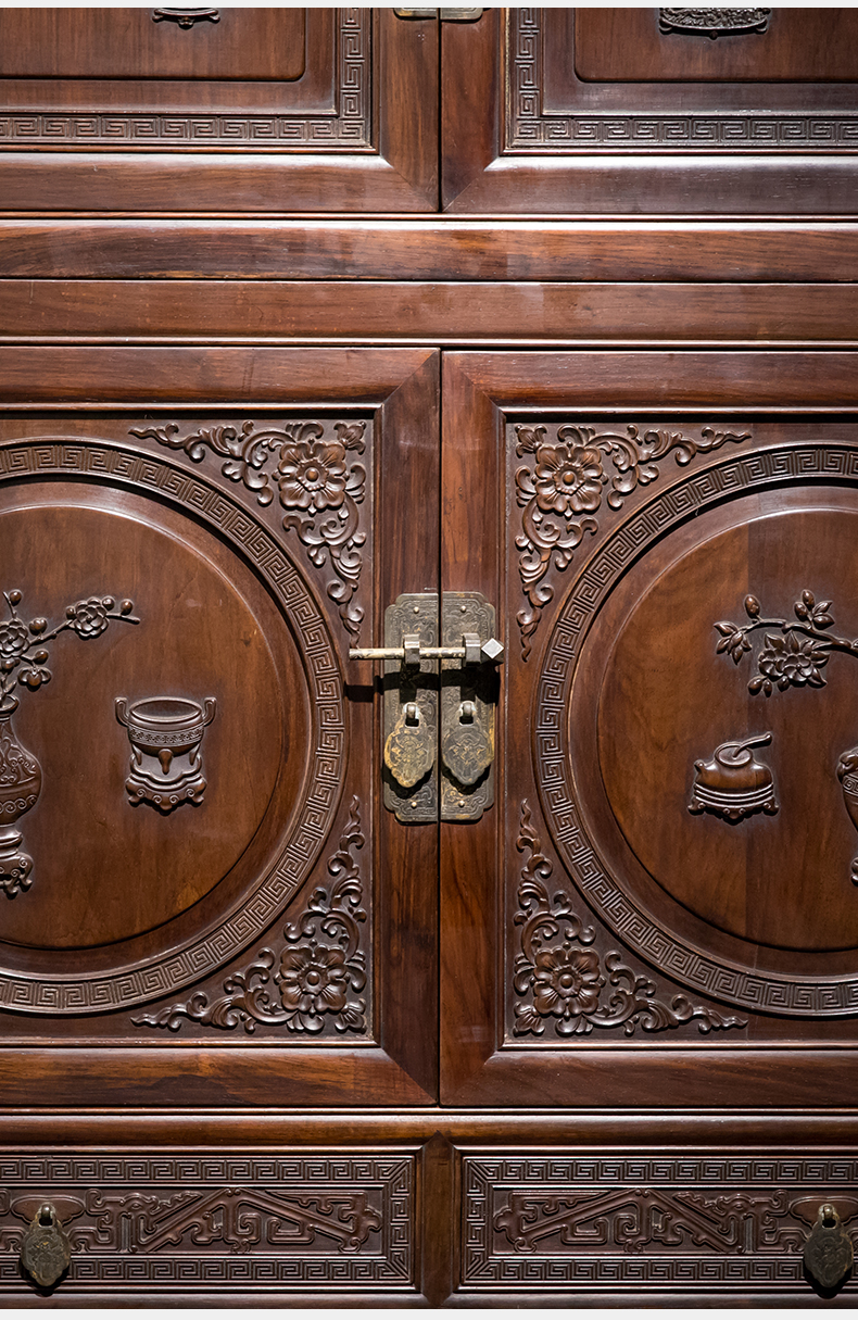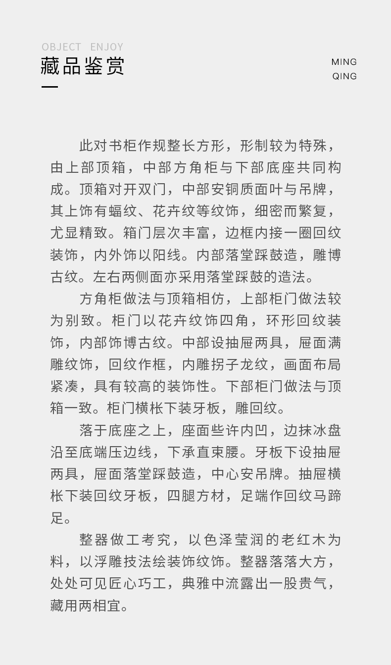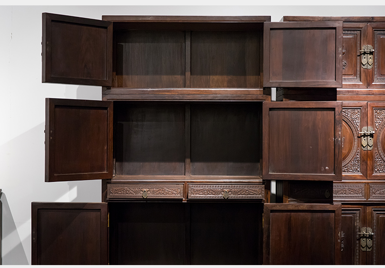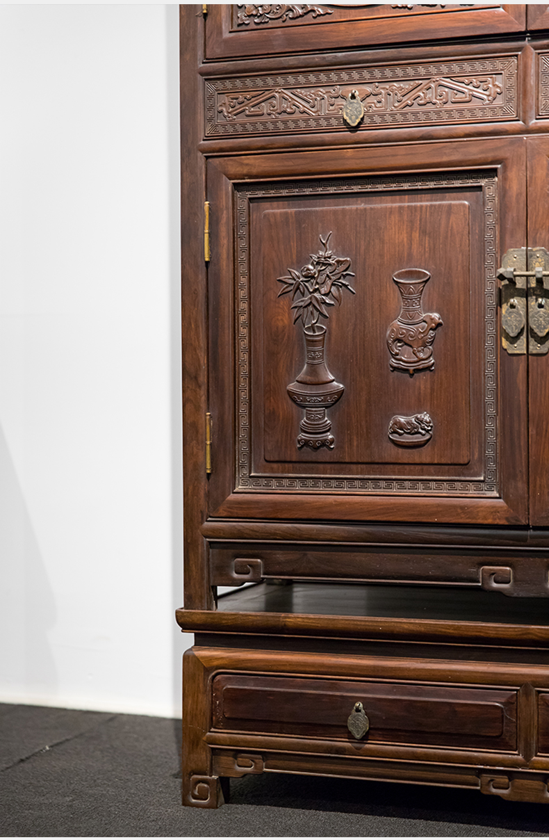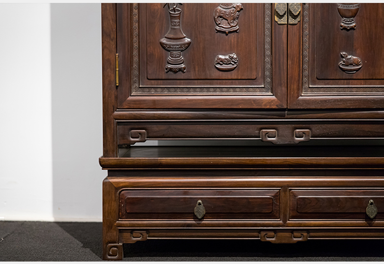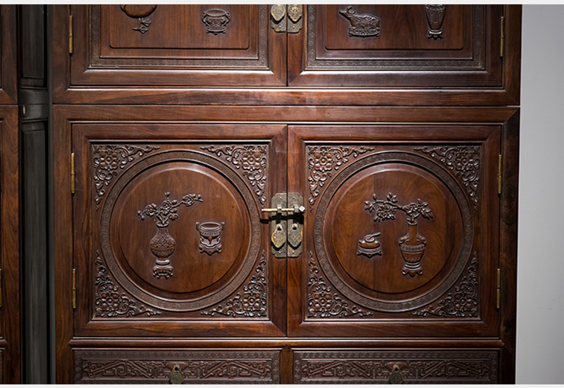 清 红木博古纹书柜(一对)