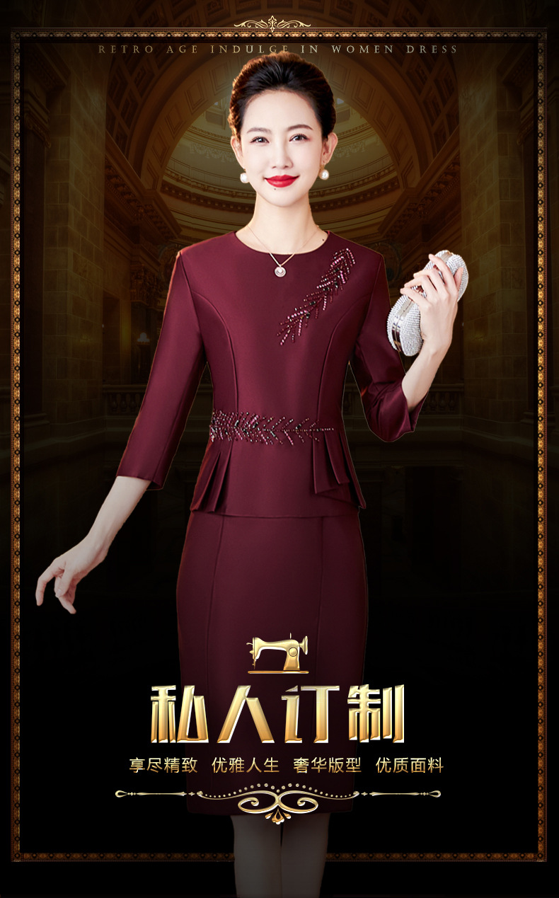 LC-2306春秋新款假两件喜婆婆嫁女儿高贵时尚连衣裙婚宴礼服旗袍裙