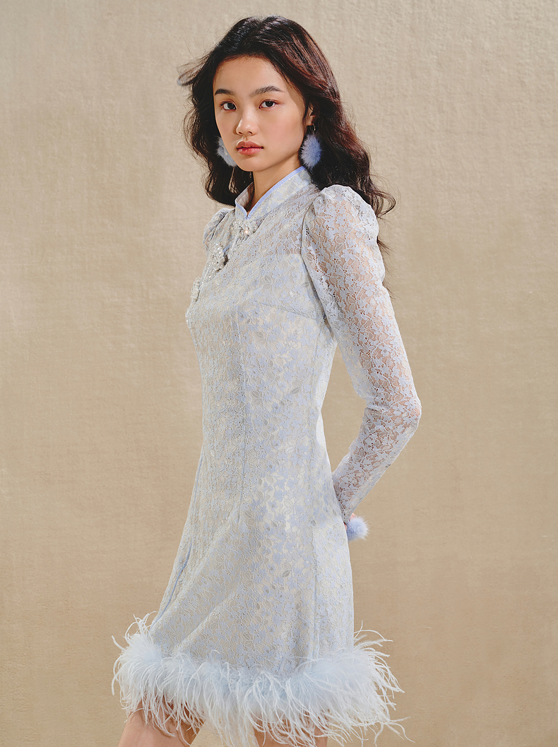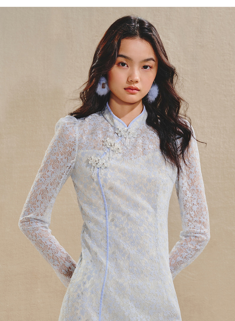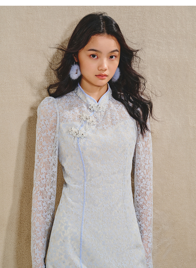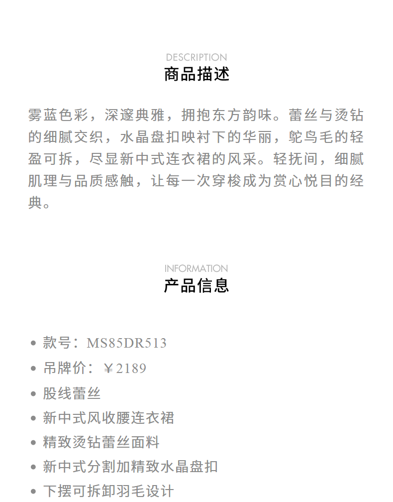 【商场同款】MAXRIENY贵雅新中式连衣裙水晶盘扣收腰裙子显瘦女(货号:MS85DR513)
