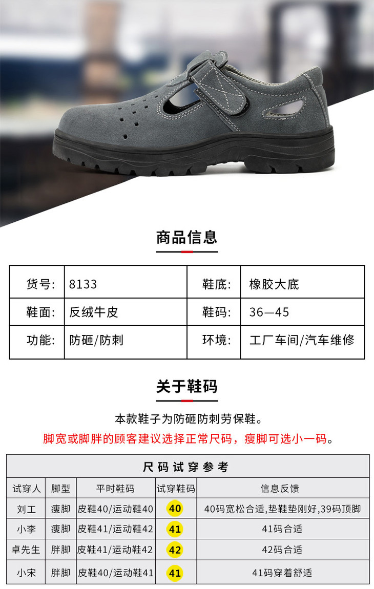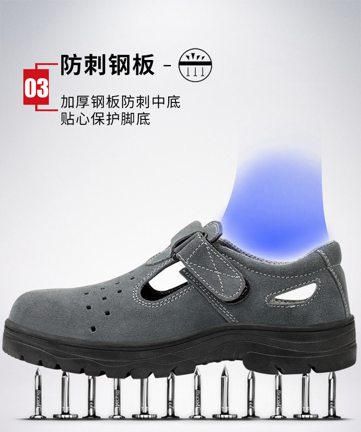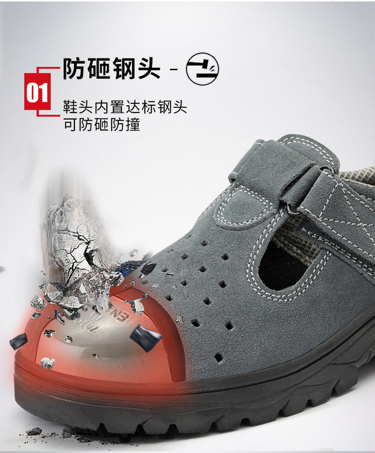 劳保鞋男透气钢包防砸防刺魔术扣耐磨橡胶底舒适防臭安全工作鞋