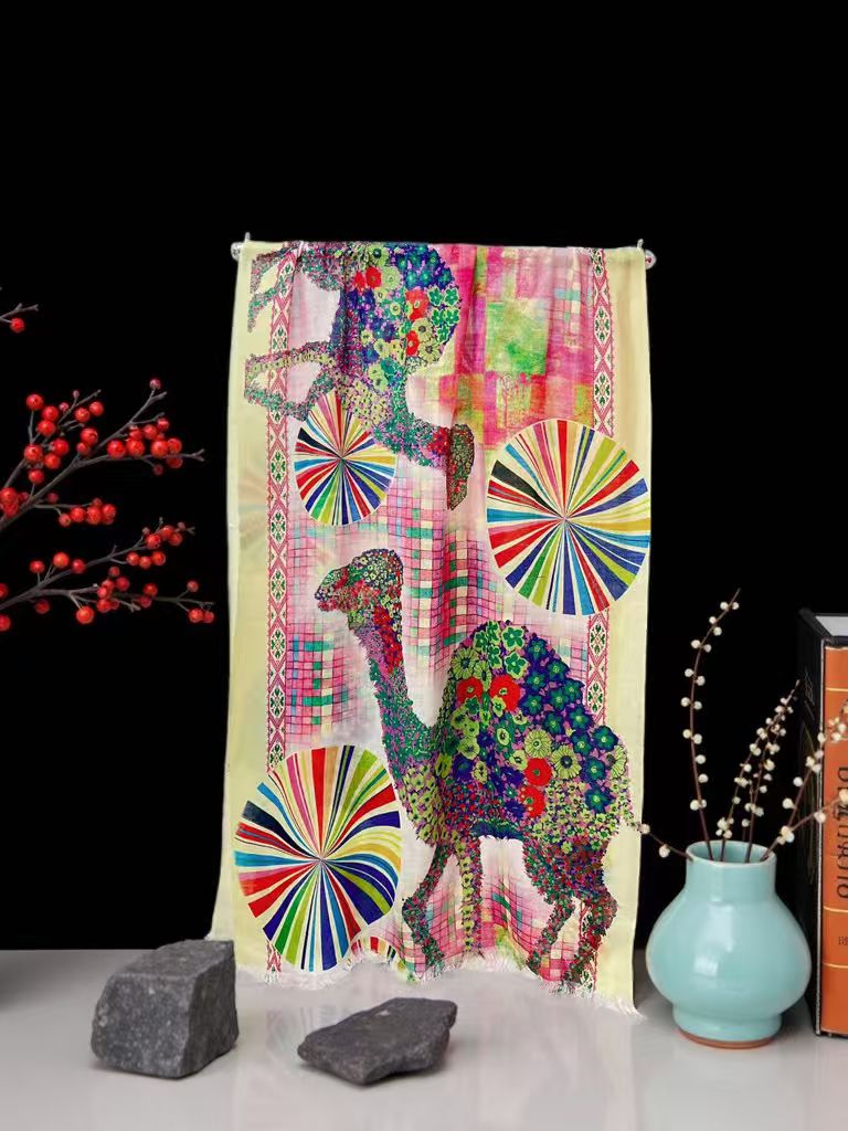 {特卖}100%羊毛围巾花型二十九彩绘骆驼~喜出
