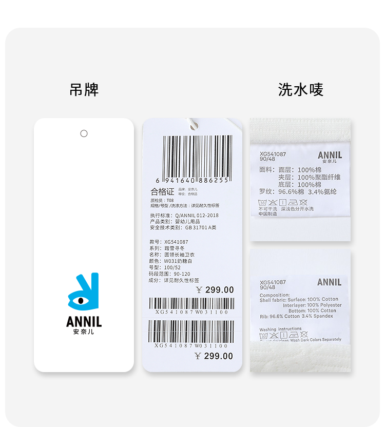 【实体店同款】女童圆领长袖卫衣冬季新款安奈儿童装XG541087