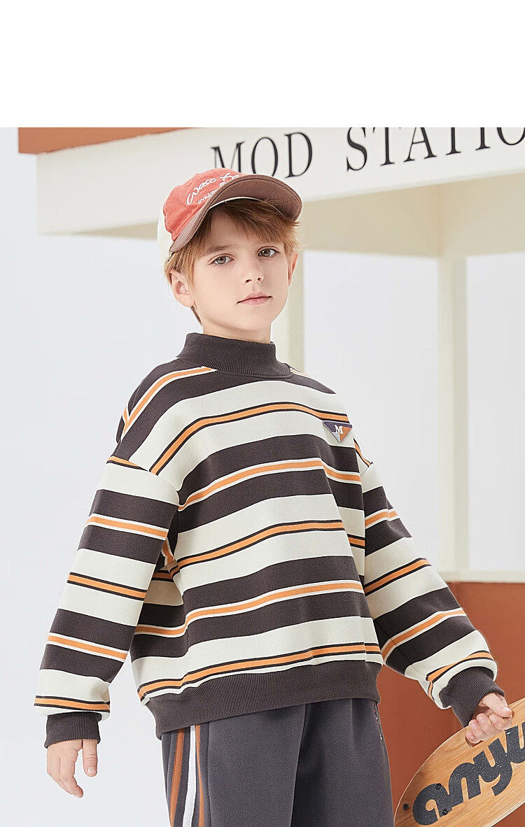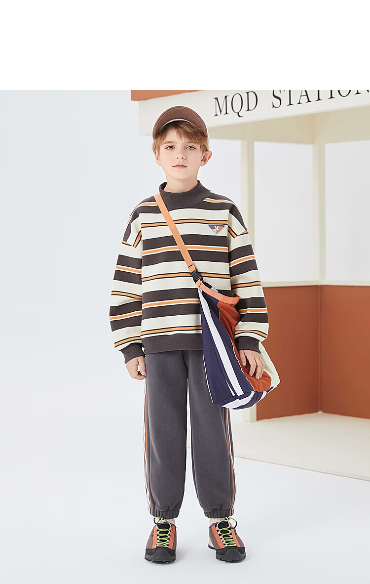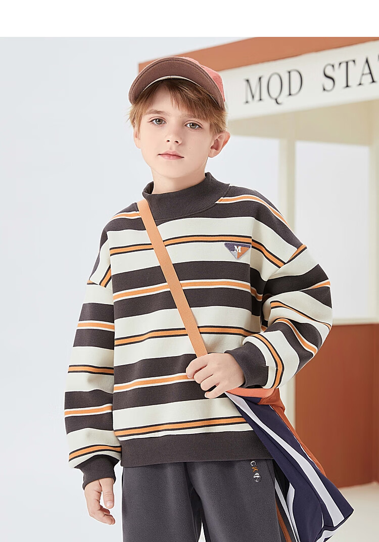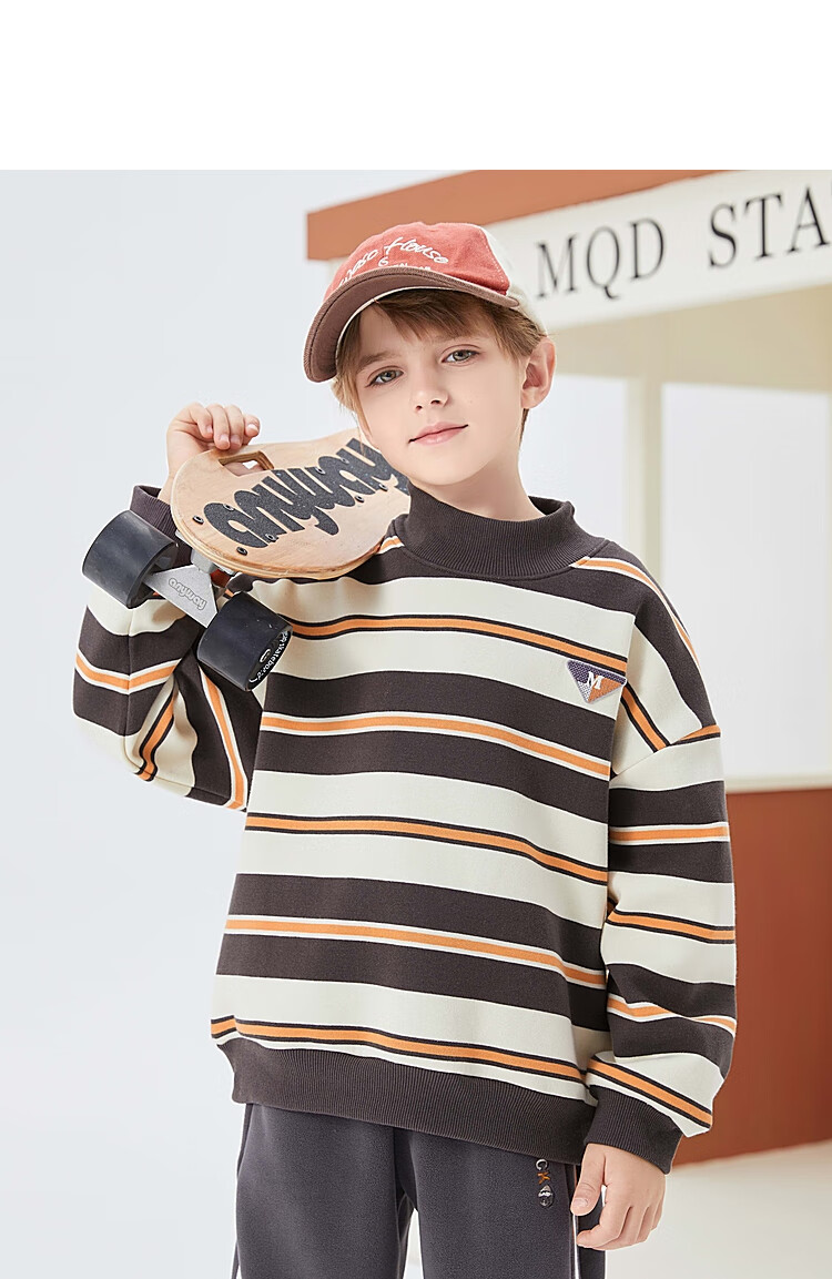【MQD】童装男大童冬季新款潮酷休闲条纹卫衣