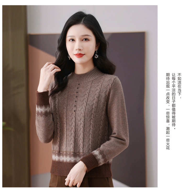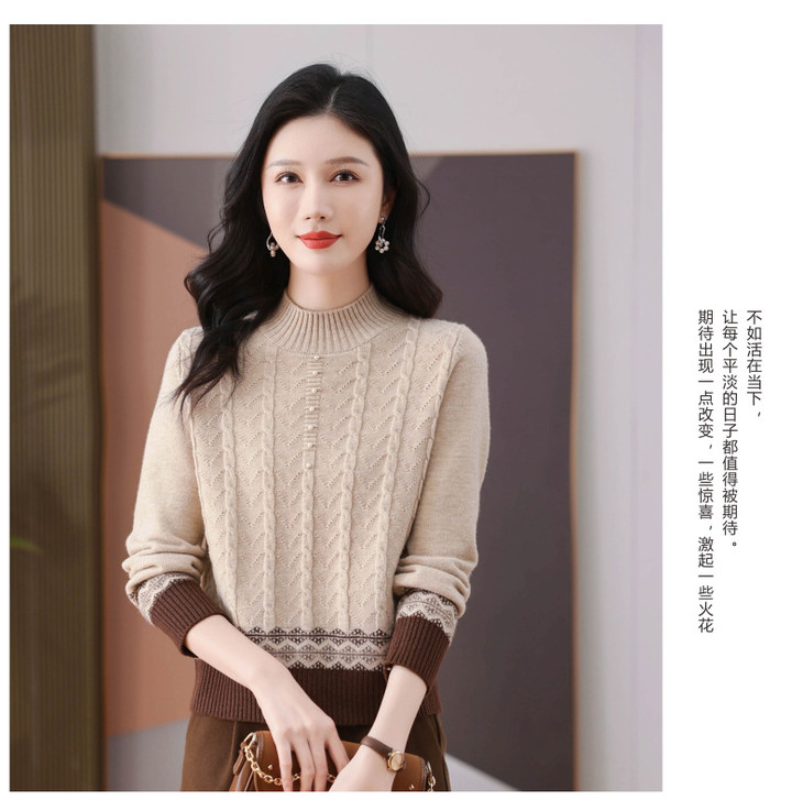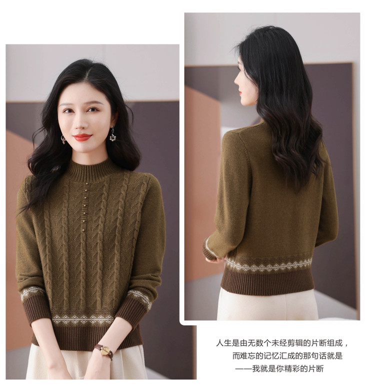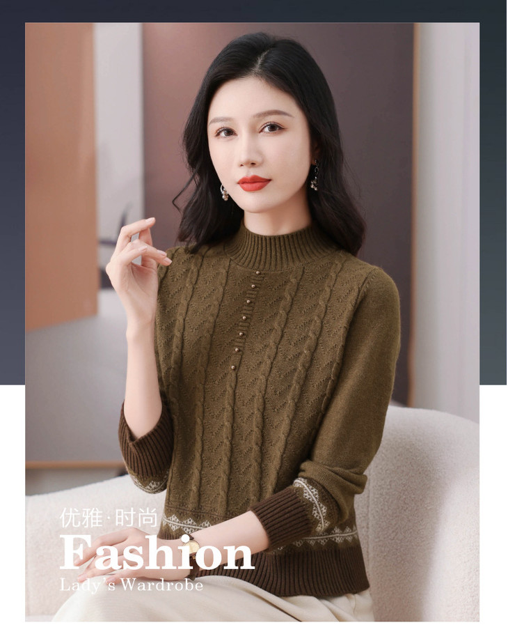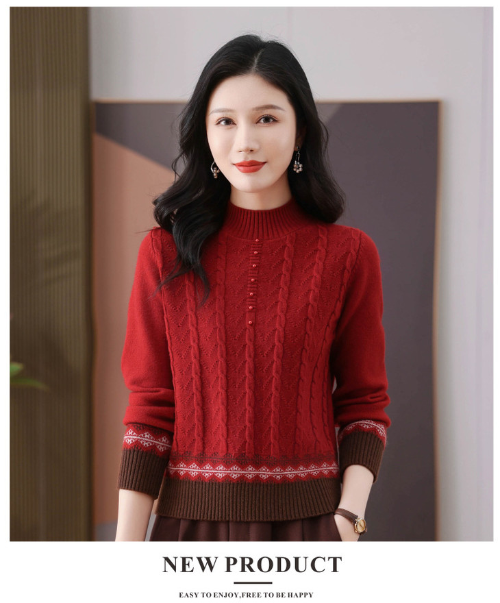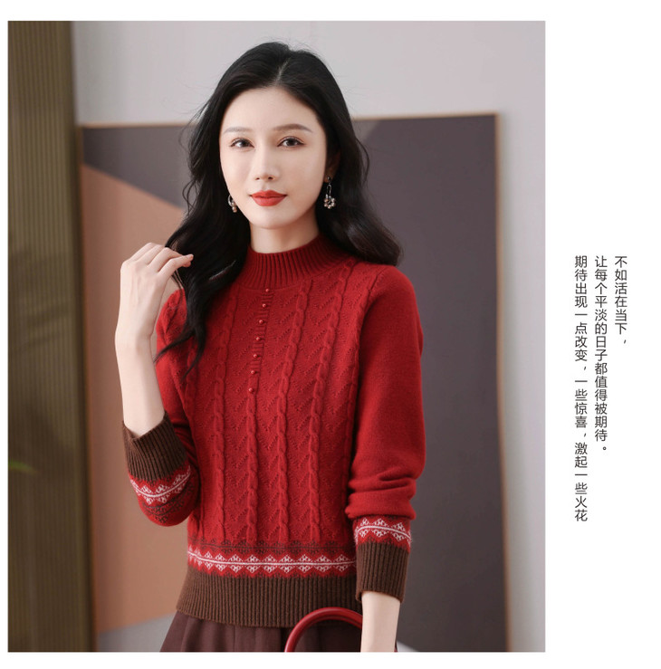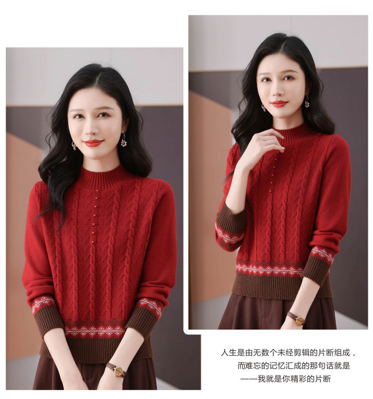 妈妈洋气针织上衣,本命年红色毛衣中老年气质打底衫CC-101-56281