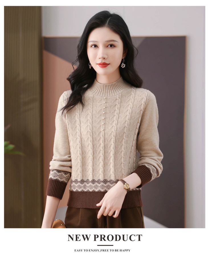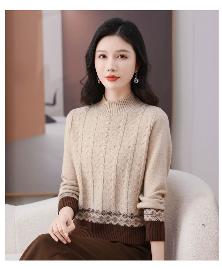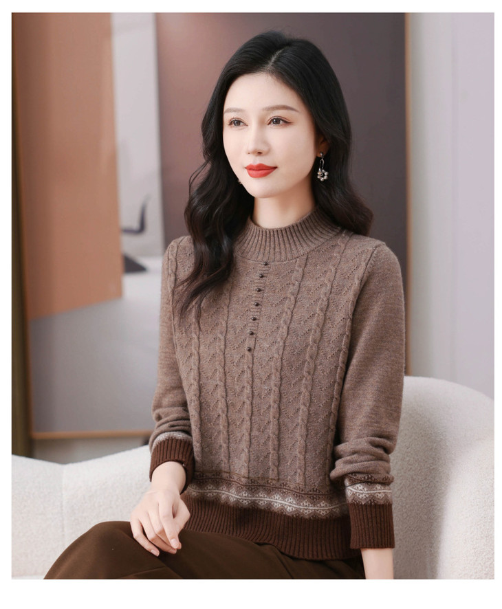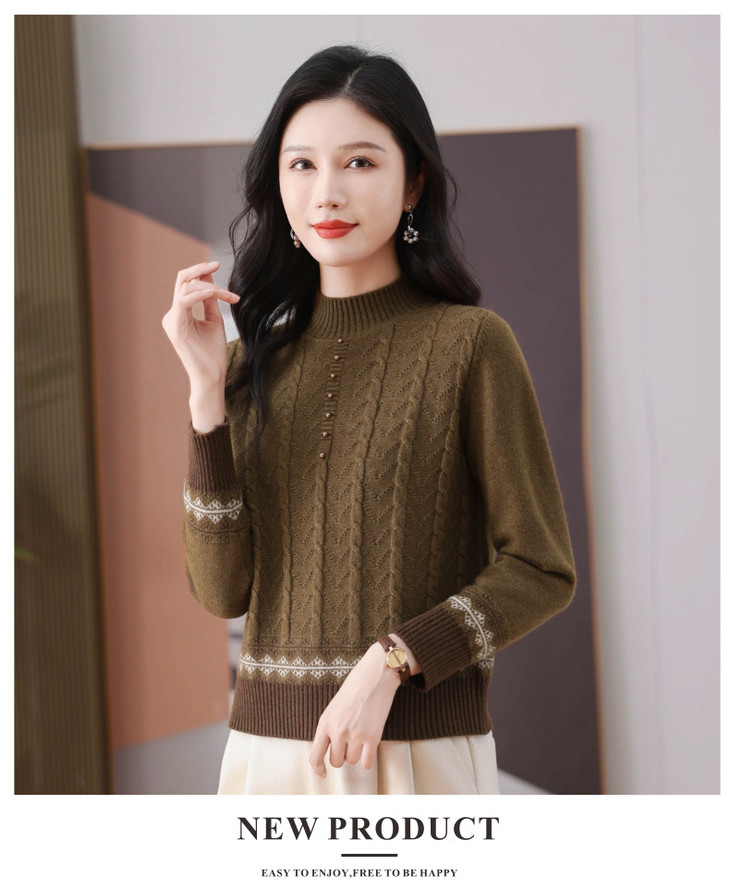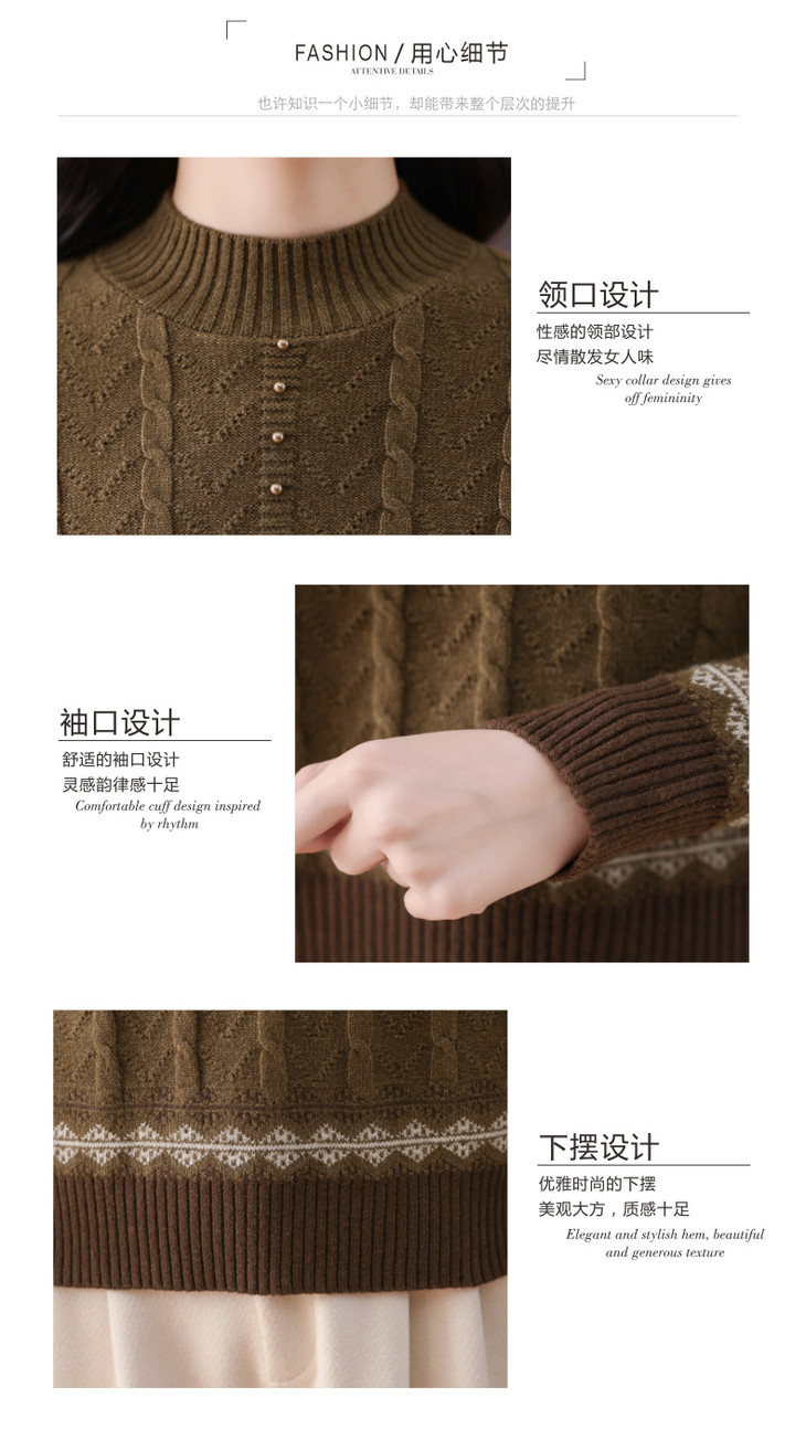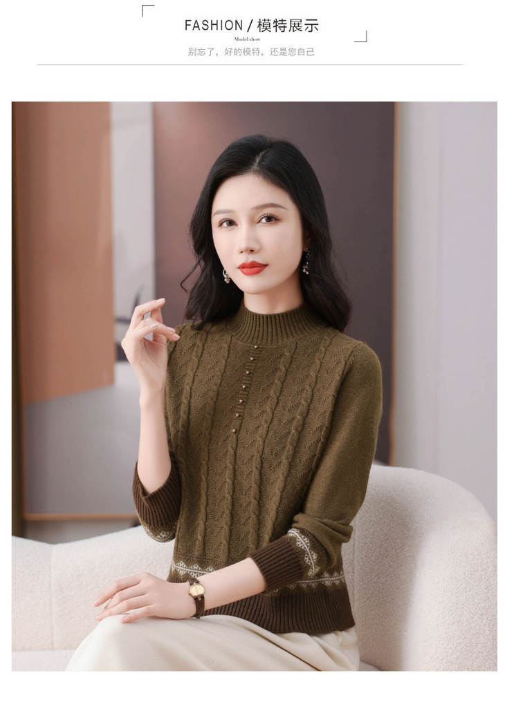 妈妈洋气针织上衣,本命年红色毛衣中老年气质打底衫CC-101-56281