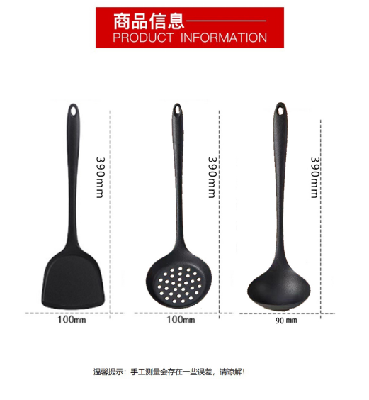 食品级耐高温硅胶三件套锅铲漏勺汤勺加长款