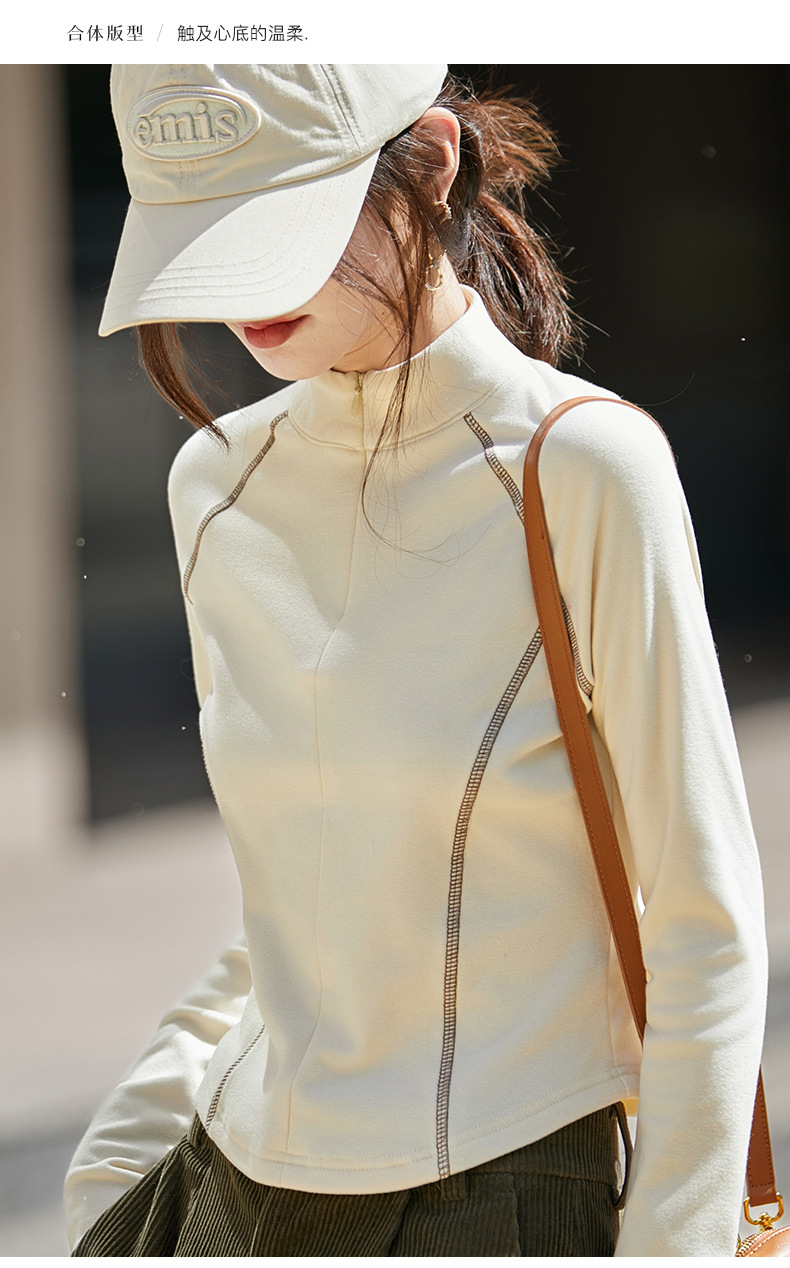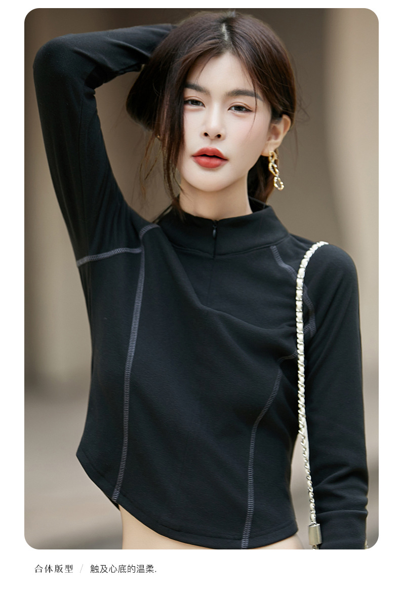 百媚生 半拉链打底女T恤瑜伽服立领保暖上衣JR-ND09-40