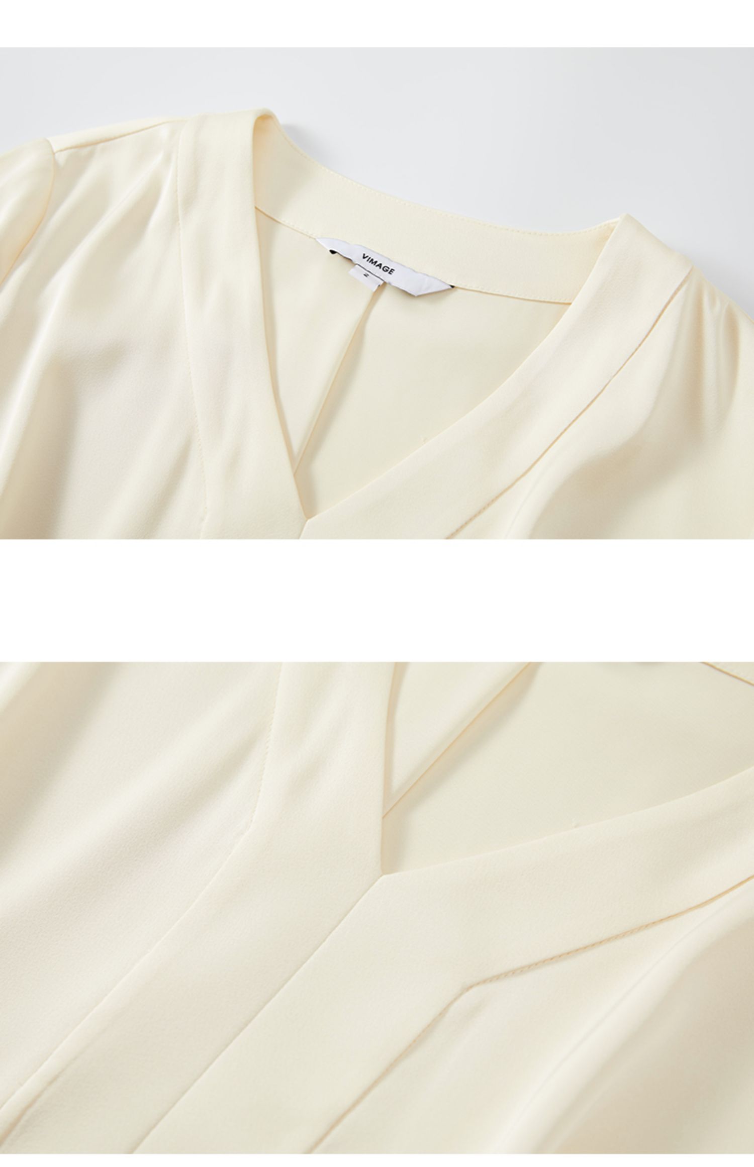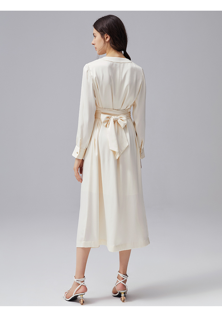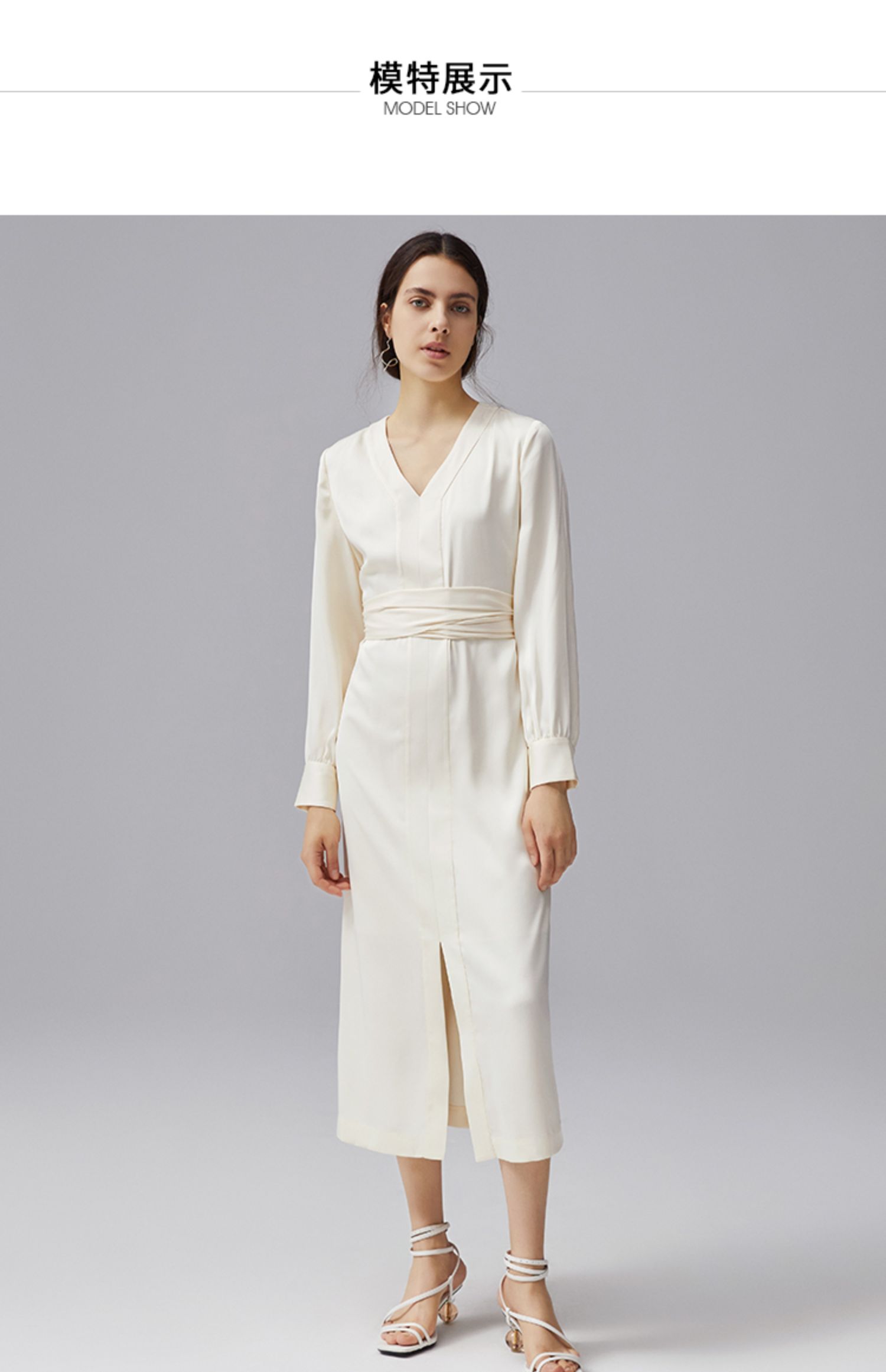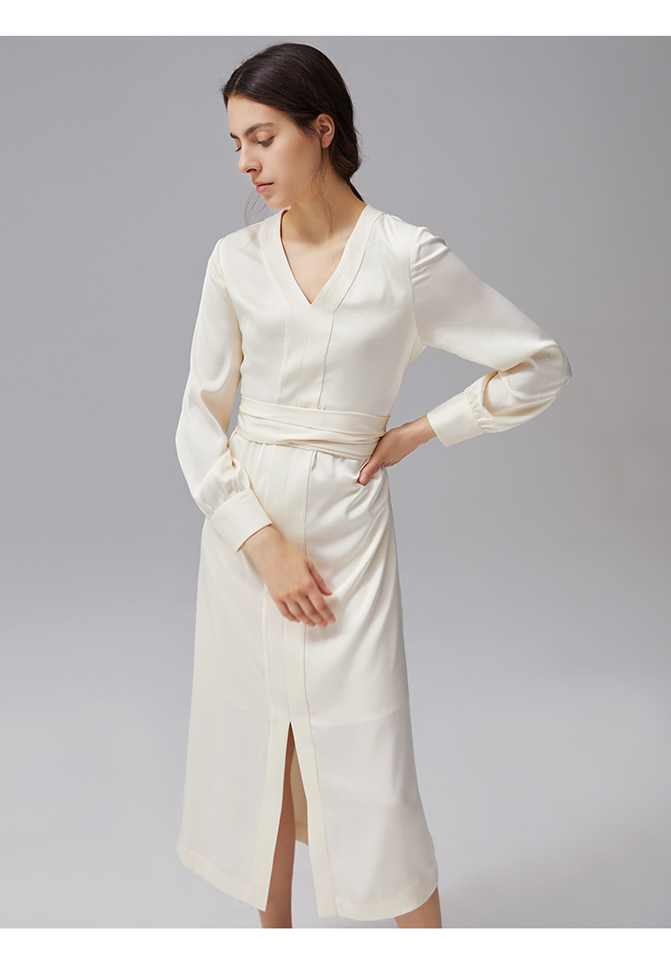 VIMAGE纬漫纪秋季新款V领显瘦高腰纯色开叉长袖连衣裙VC2107222