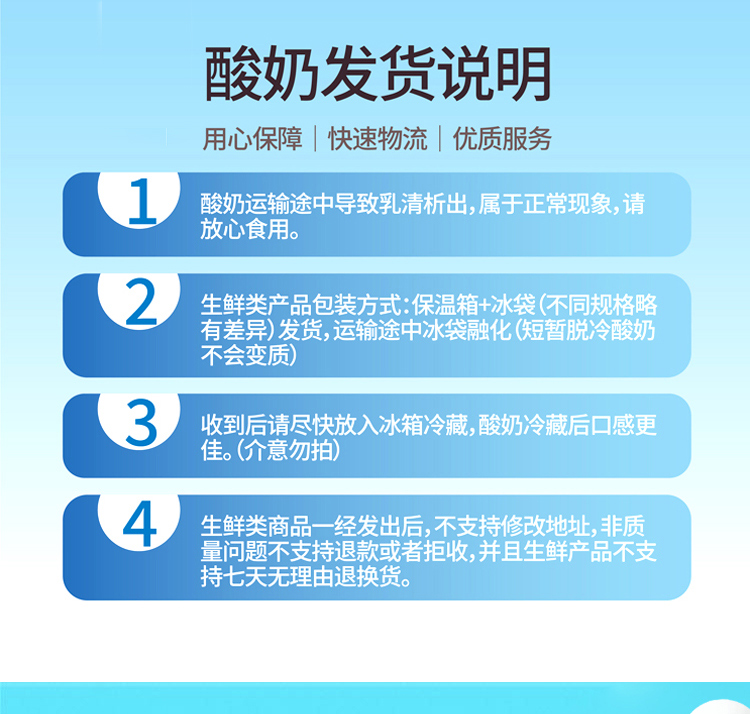 1、酸奶运输途中导致乳清析出,属于正常现象,请放心食用。