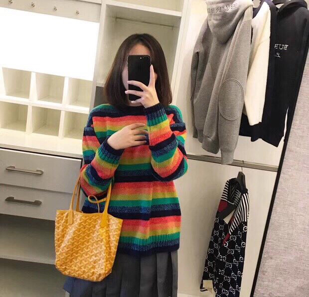 acne的彩红毛衣,今年很红的款,我在京都BAL的买手店里看到过原版,回来找了N个供货商的版,终于看到这个版,才有超值的感觉,这款毛衣不厚,中等厚度吧,也不是很薄的,单穿不扎,内搭一件紧身T打底穿起来更舒服,冬天也保暖,如果是在广东一代,里面穿个背心即可。只能说我卖的这个价格超值无比,你喜欢就抓紧拍,注意洗涤方式,要么送去干洗店干洗,要么用专门的羊毛洗涤剂来洗!