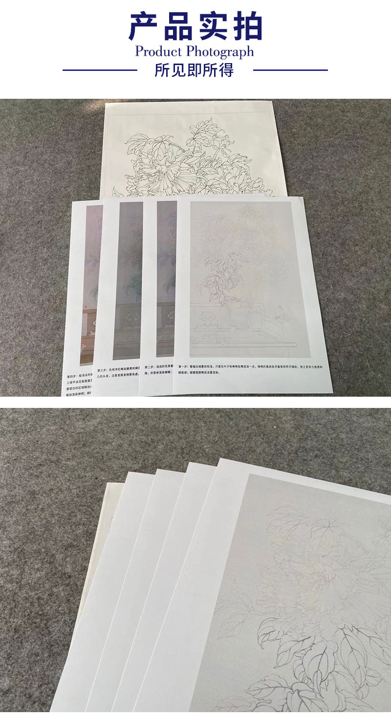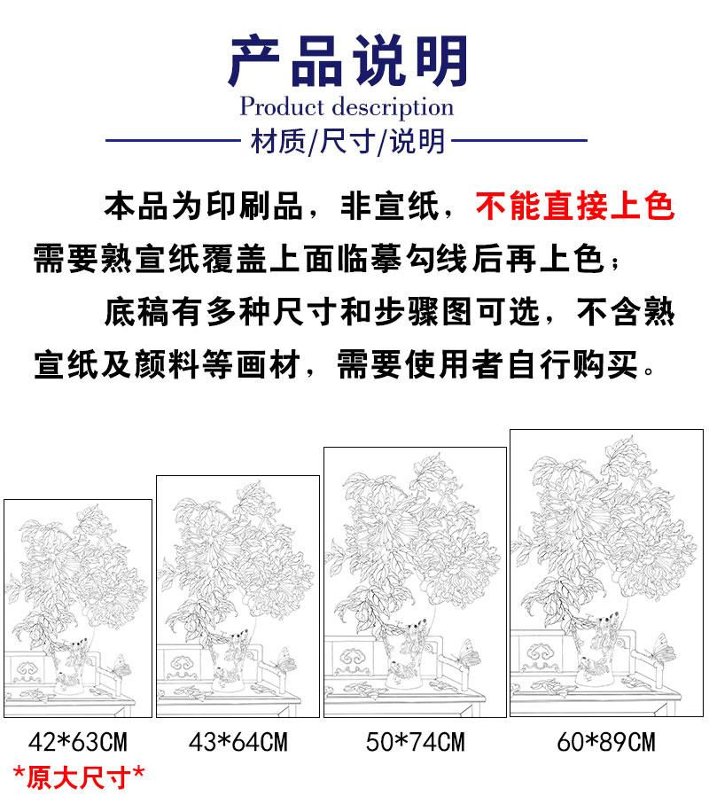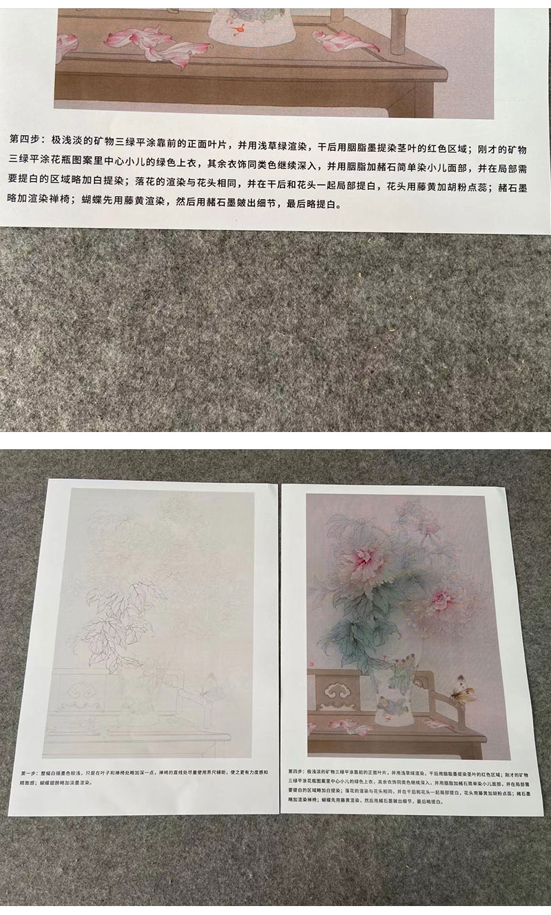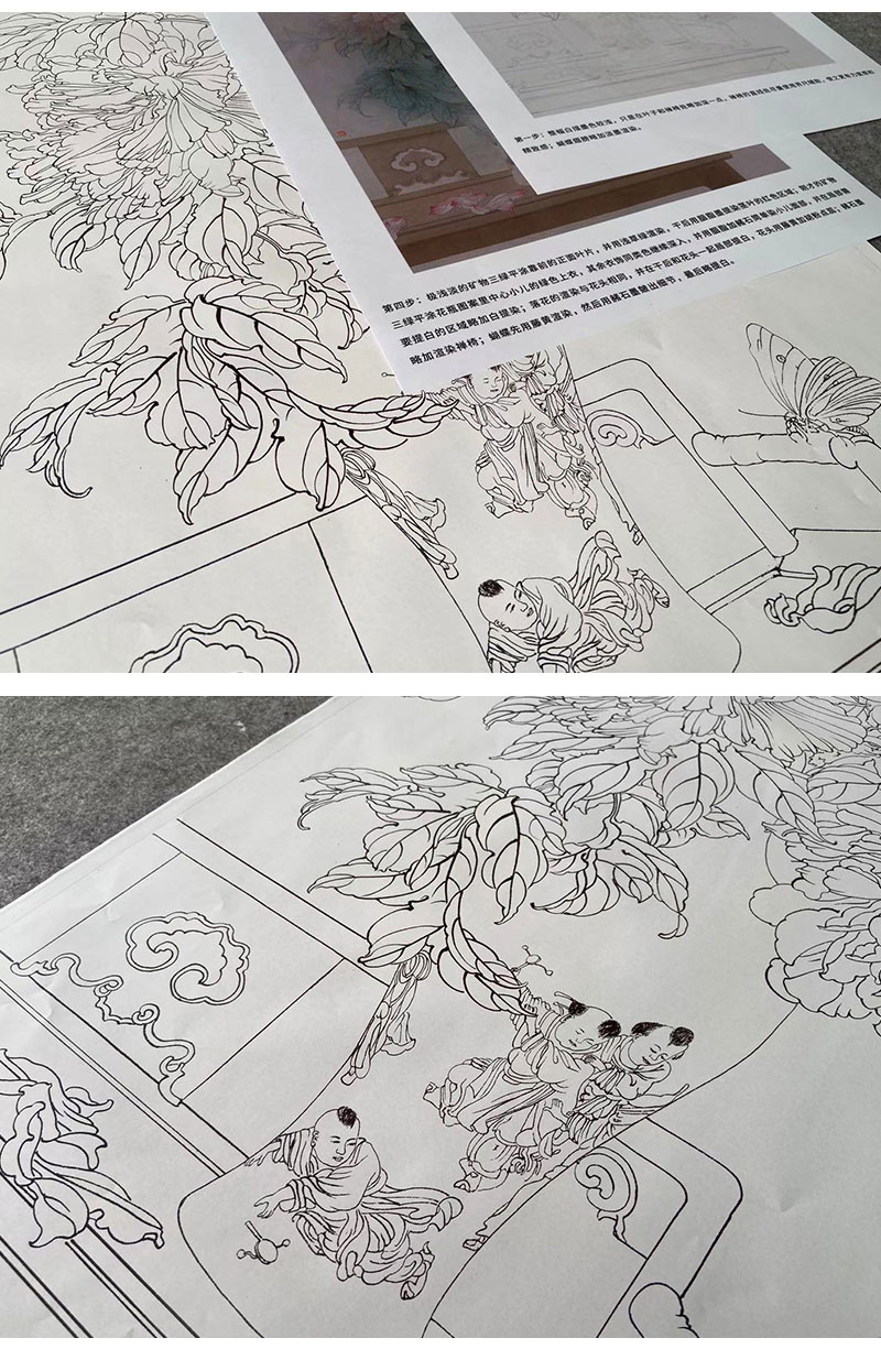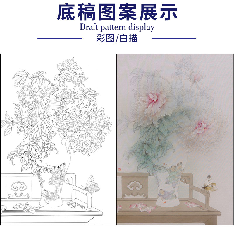 【有步骤】王震工笔画白描底稿《当时事》博古花瓶初学者临摹花鸟线稿WZ04