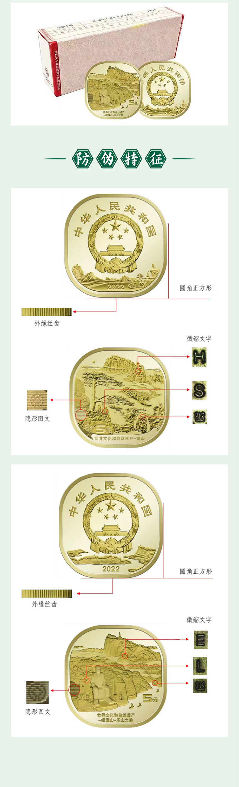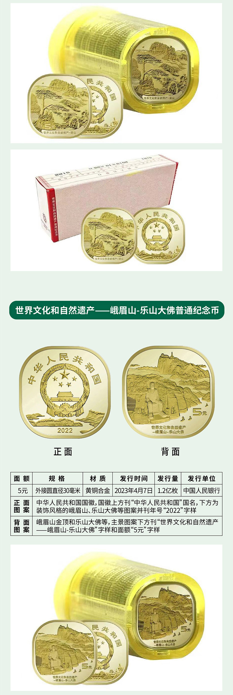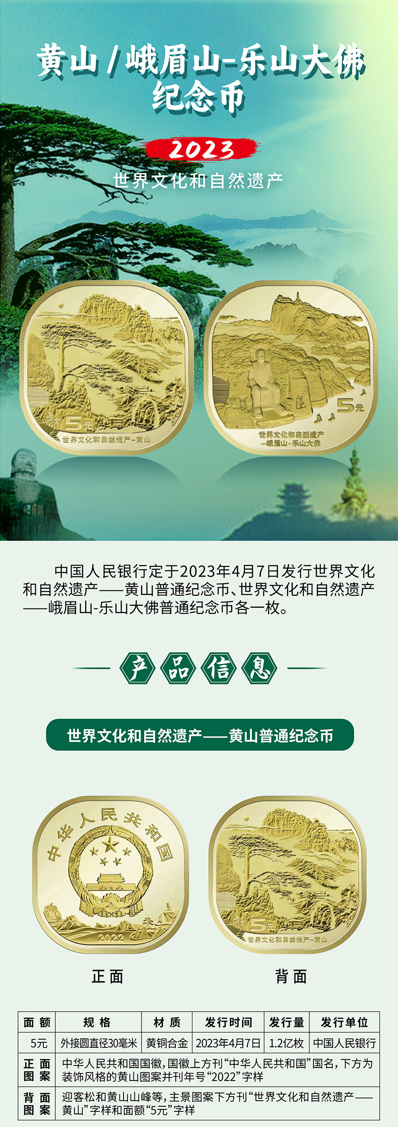 世界文化和自然遗产纪念币 黄山纪念币 峨眉山乐山大佛纪念币