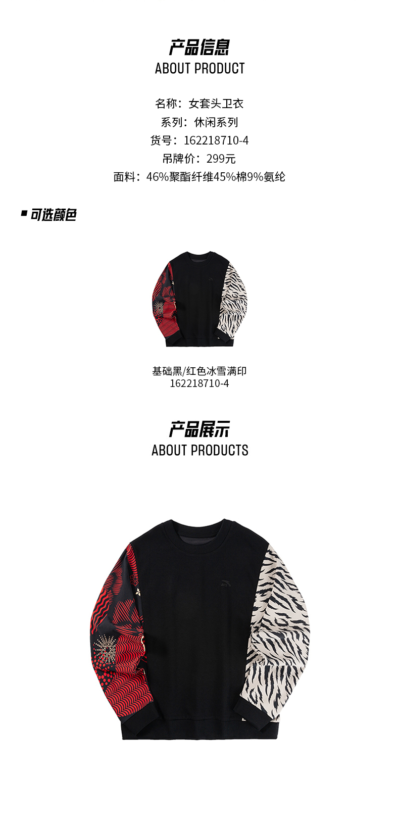 【M/L断码】安踏卫衣女装春季新款圆领针织休闲服宽松运动上衣162218710【库存有限,如无货将做退款,介意慎拍!】