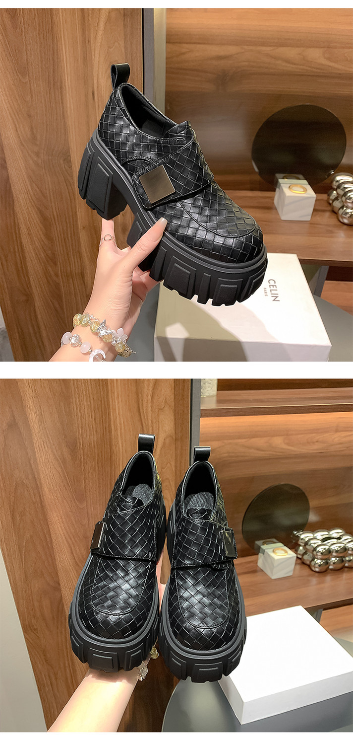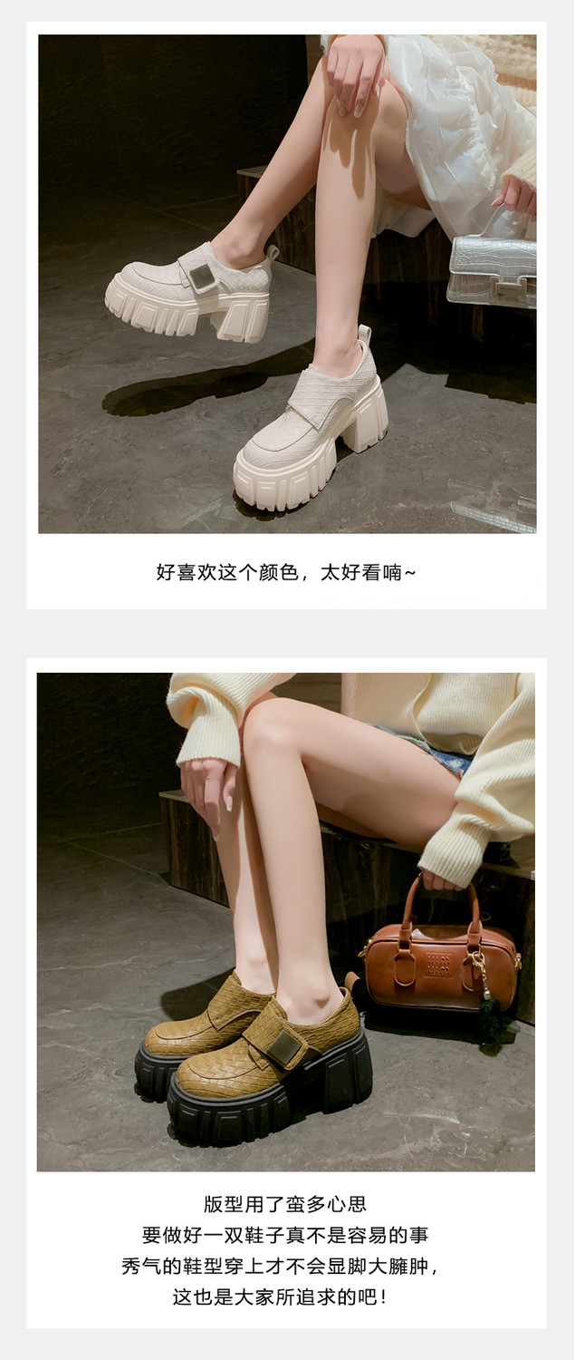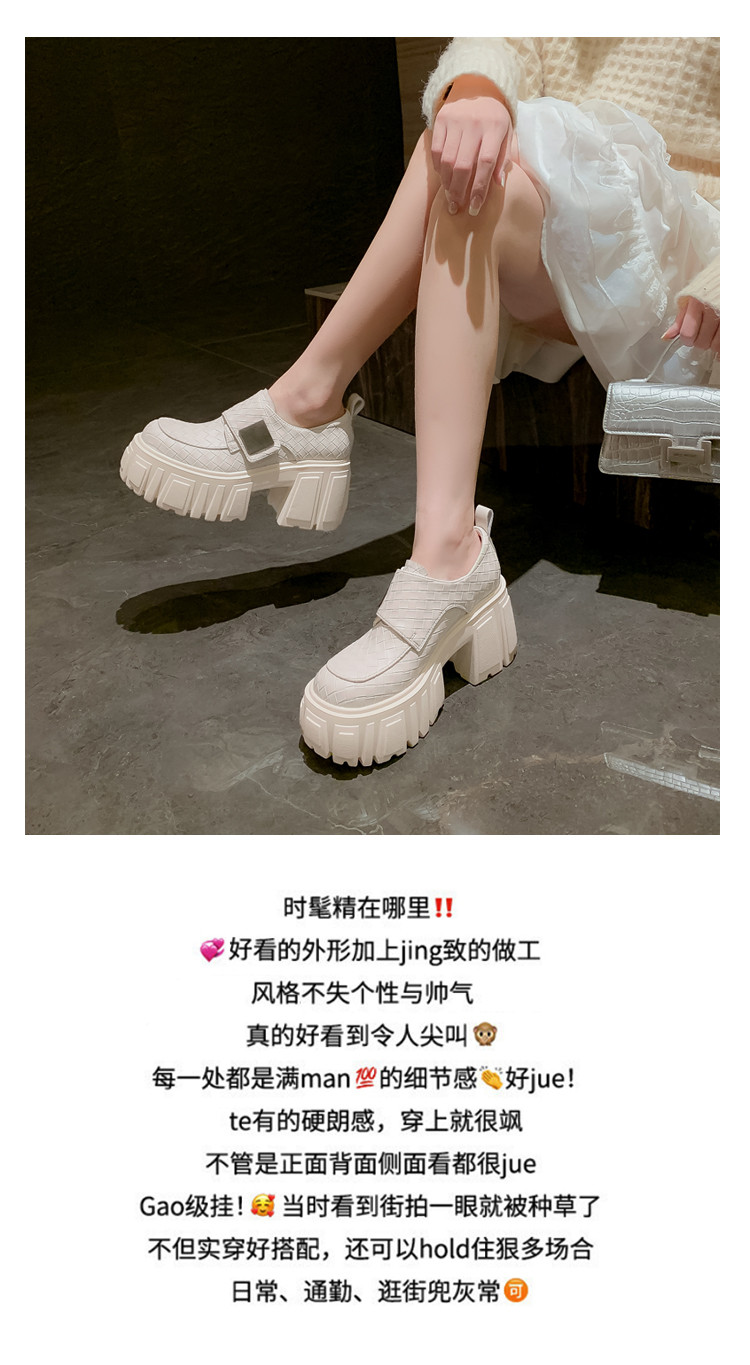 【预售5天】春秋季新款厚底粗跟单鞋魔术贴乐福鞋女鞋百搭英伦风增高小皮鞋ZMXY&ZM5126 商品图2