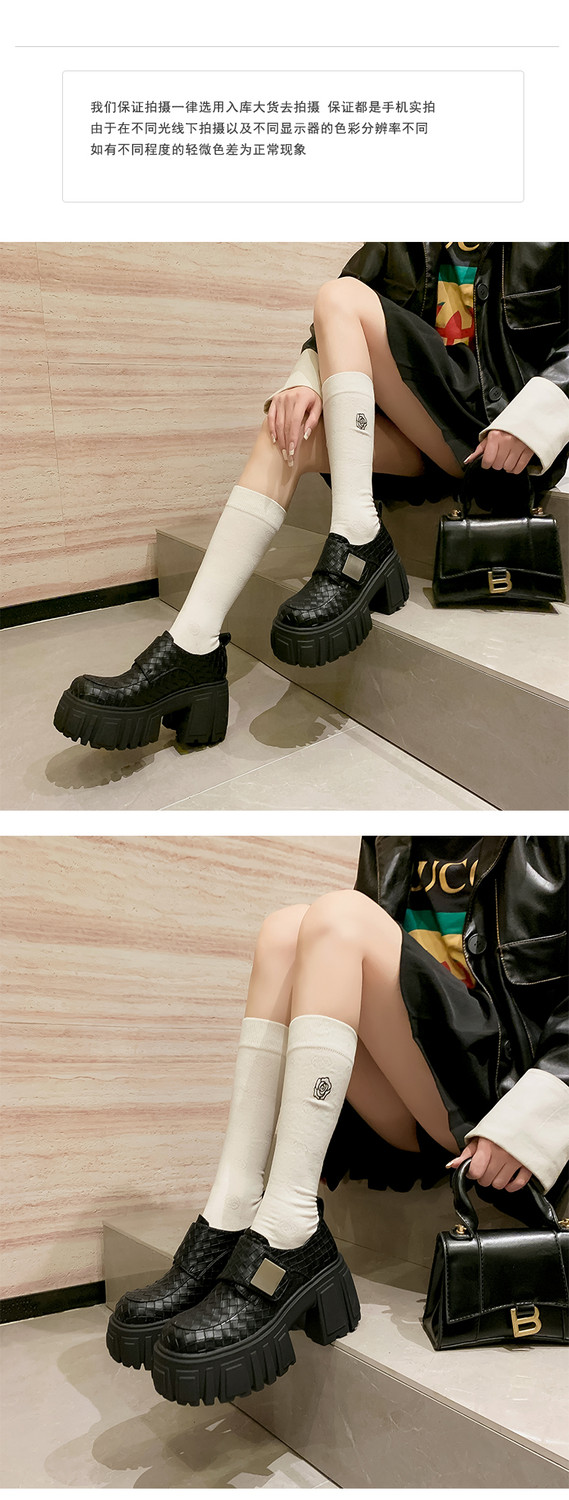 【预售5天】春秋季新款厚底粗跟单鞋魔术贴乐福鞋女鞋百搭英伦风增高小皮鞋ZMXY&ZM5126 商品图4
