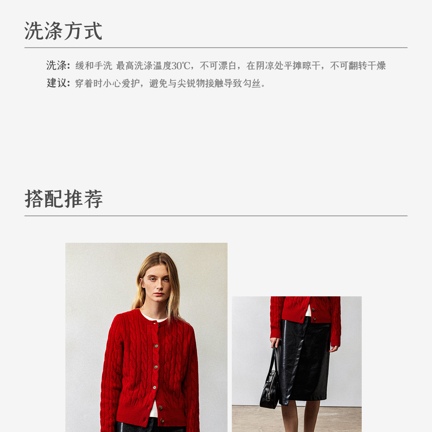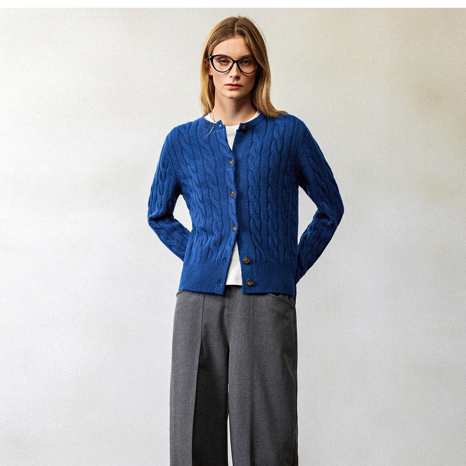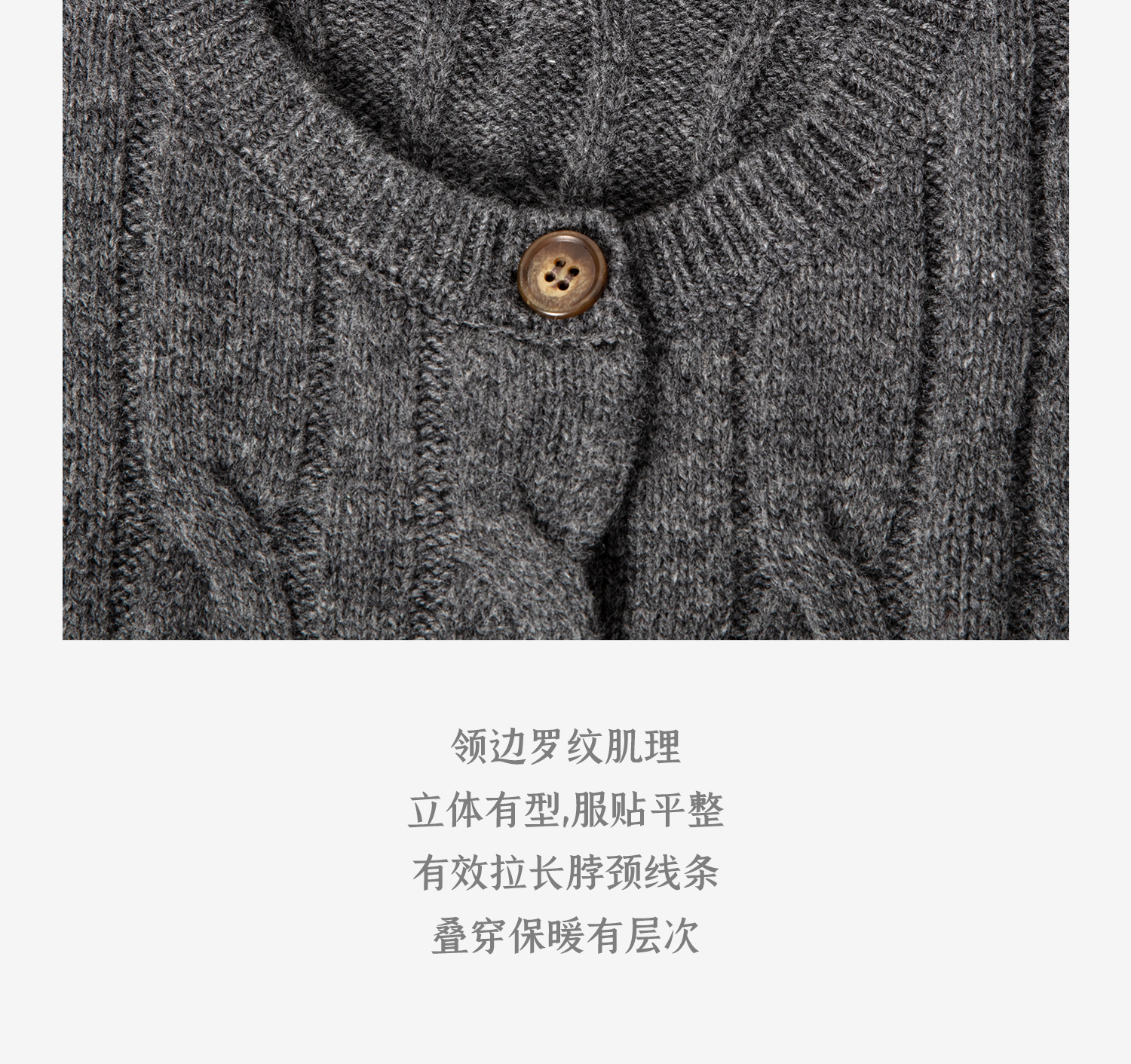 西嘉90S复古粗针绞花短款直角肩开衫毛衣2024冬新MY2404038