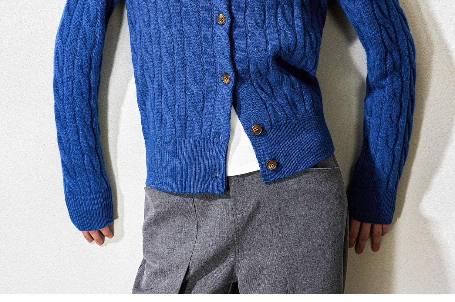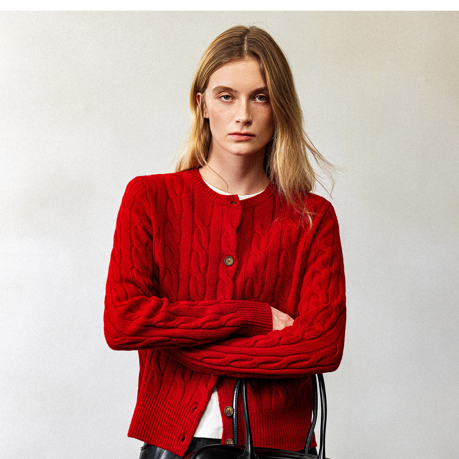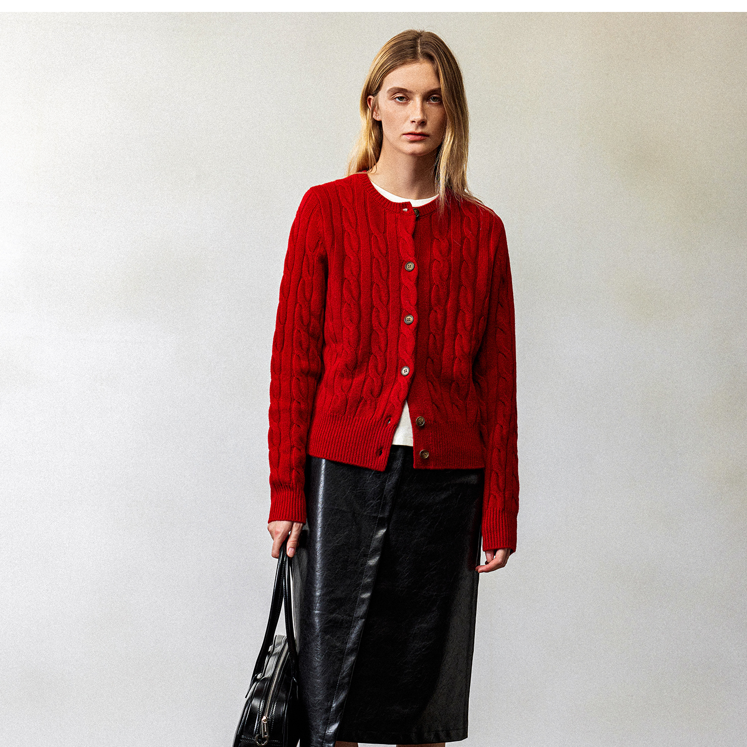 西嘉90S复古粗针绞花短款直角肩开衫毛衣2024冬新MY2404038