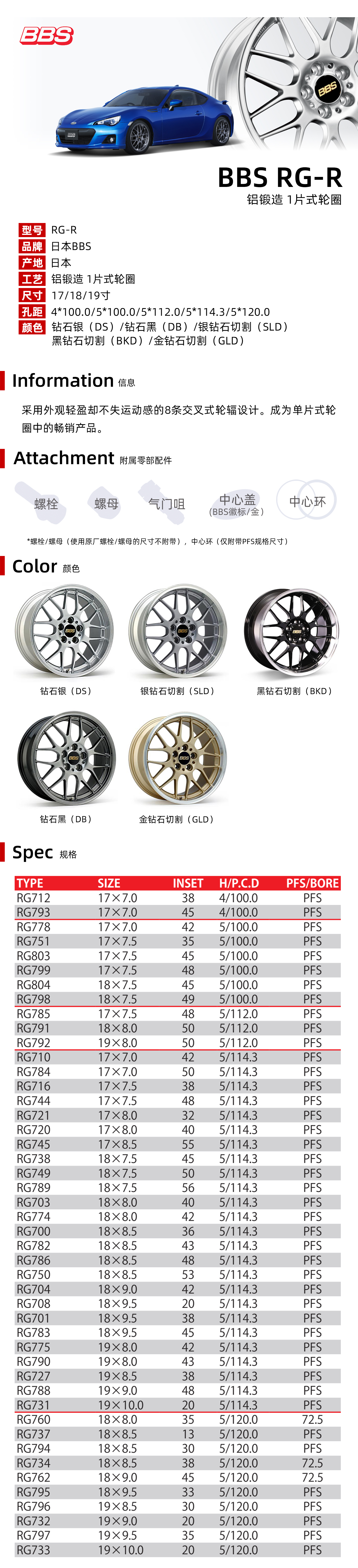 BBS RG-R型号 一片式铝锻造轮圈 17/18/19寸 4*100 5*100/112/114.3/120