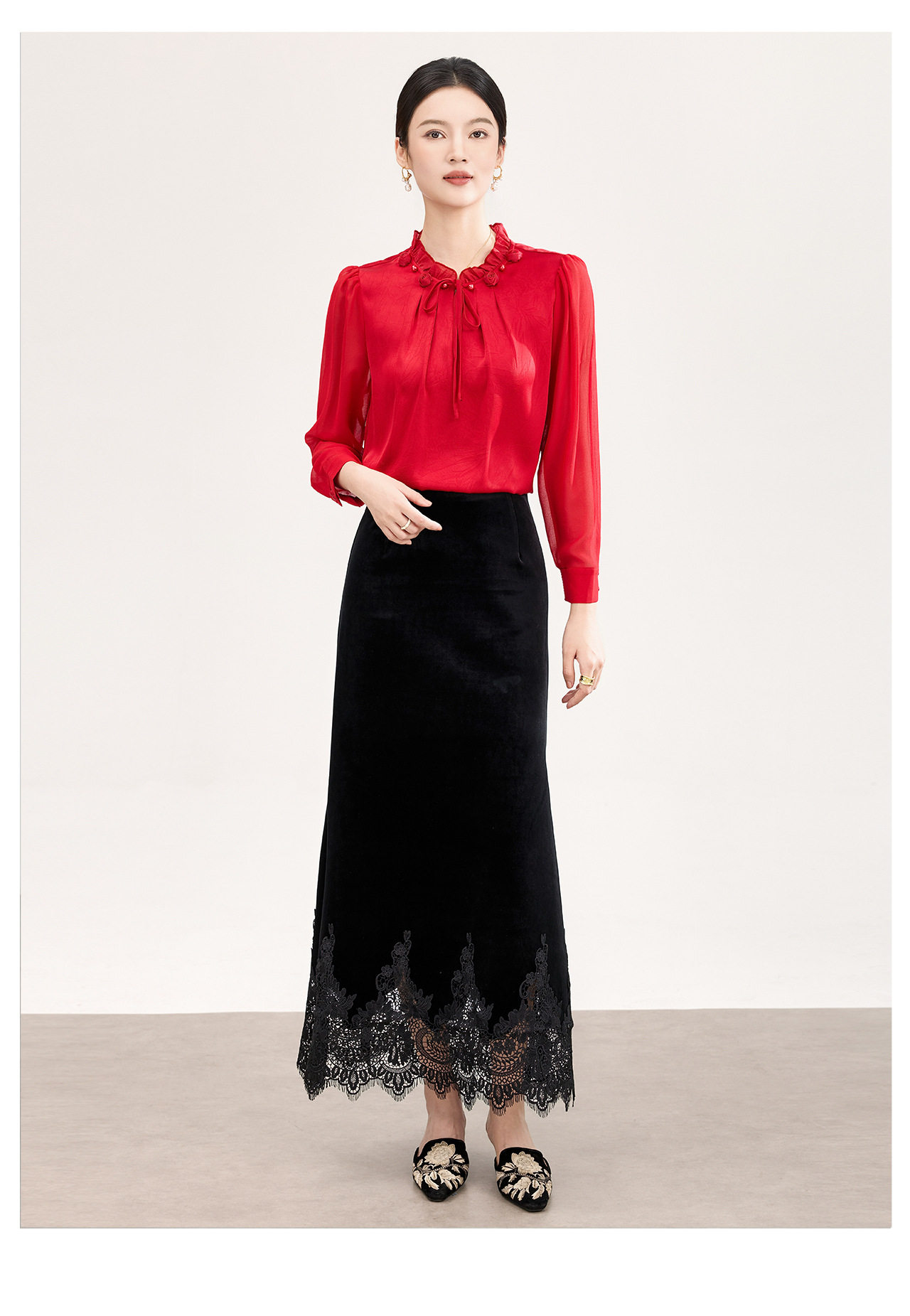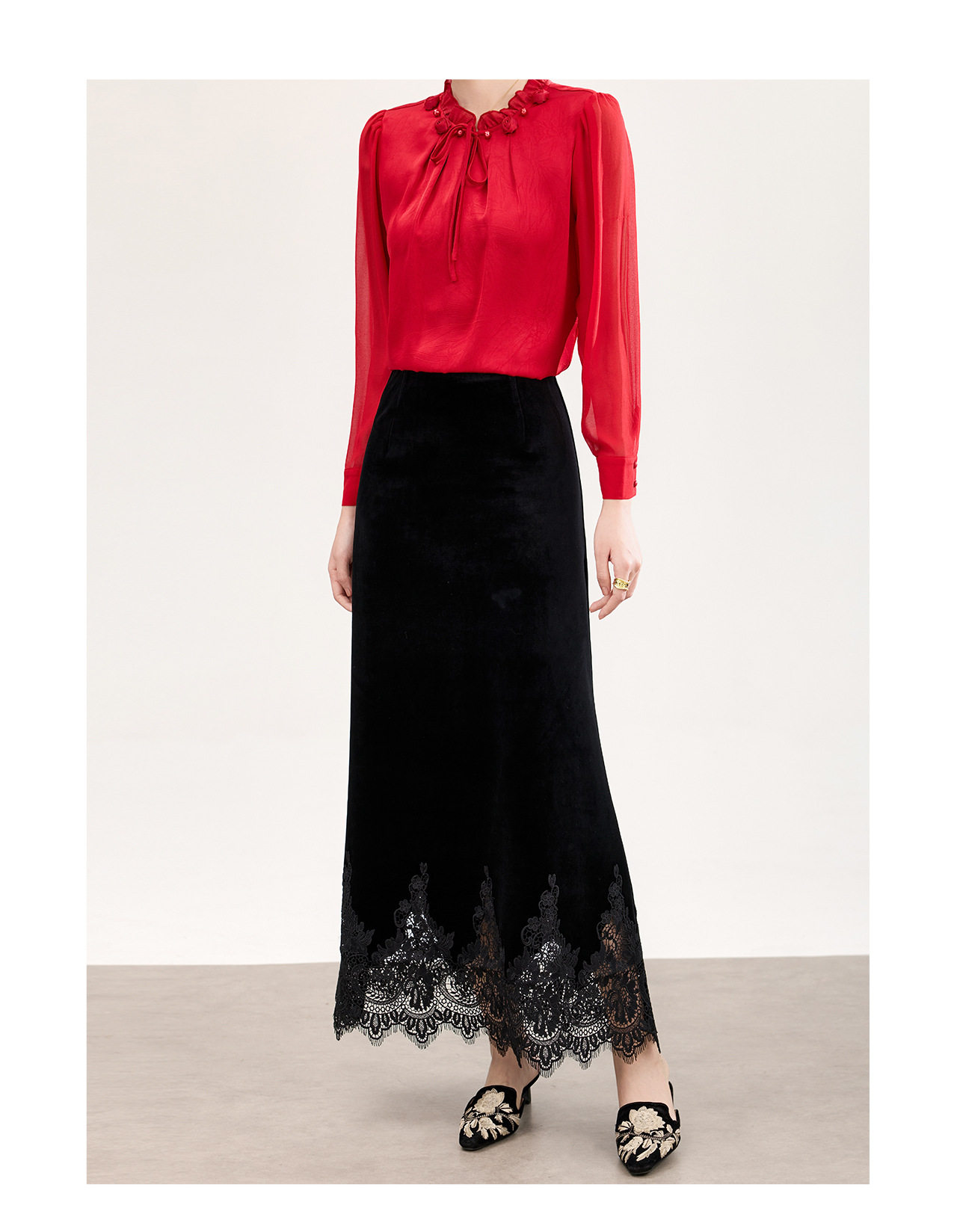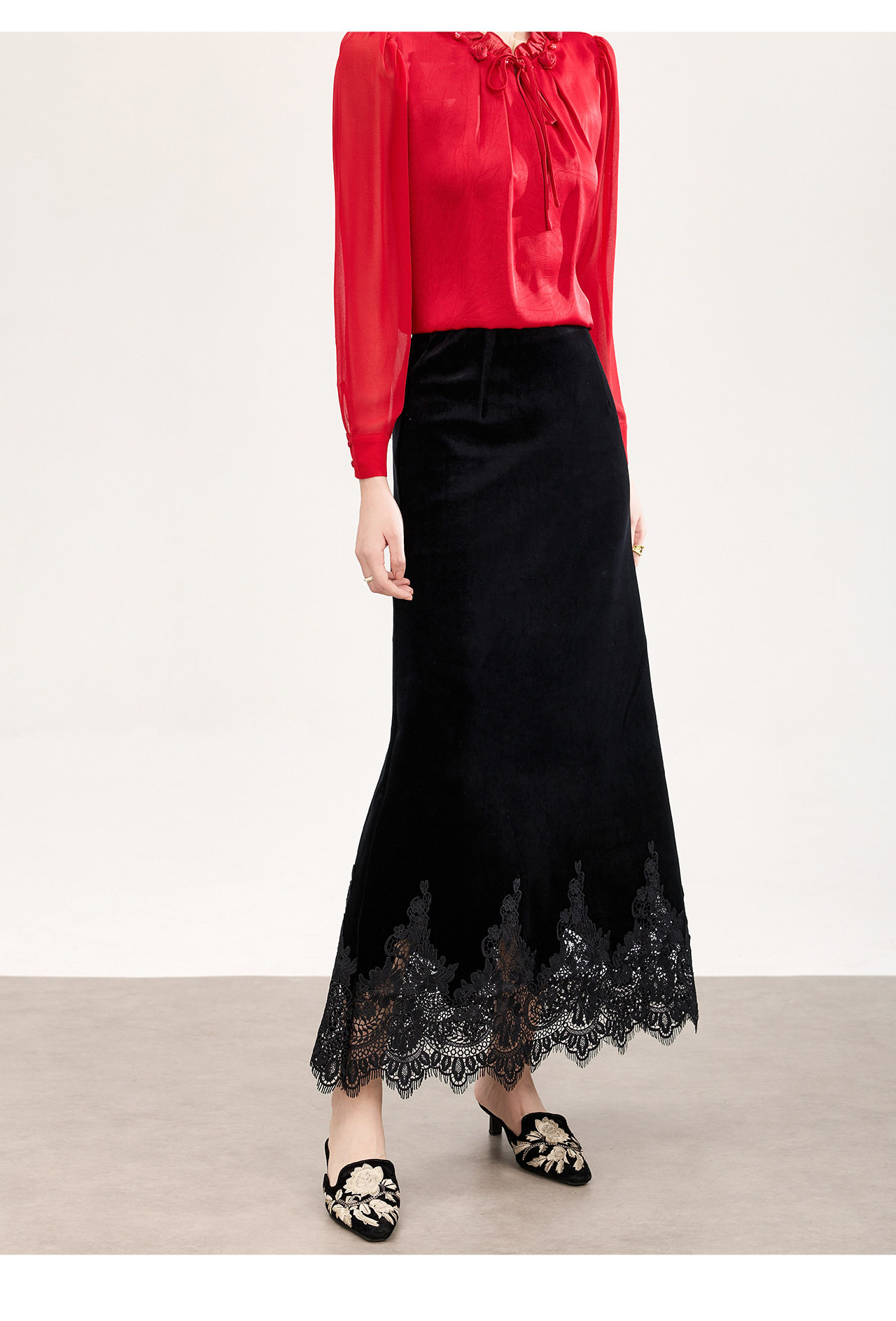 「高货wl」全新升级【铂金会员257/天猫339/差价82】(33548)洛诗琳新中式丝绒半身裙2026春季新款高腰蕾丝刺绣拼接裙
