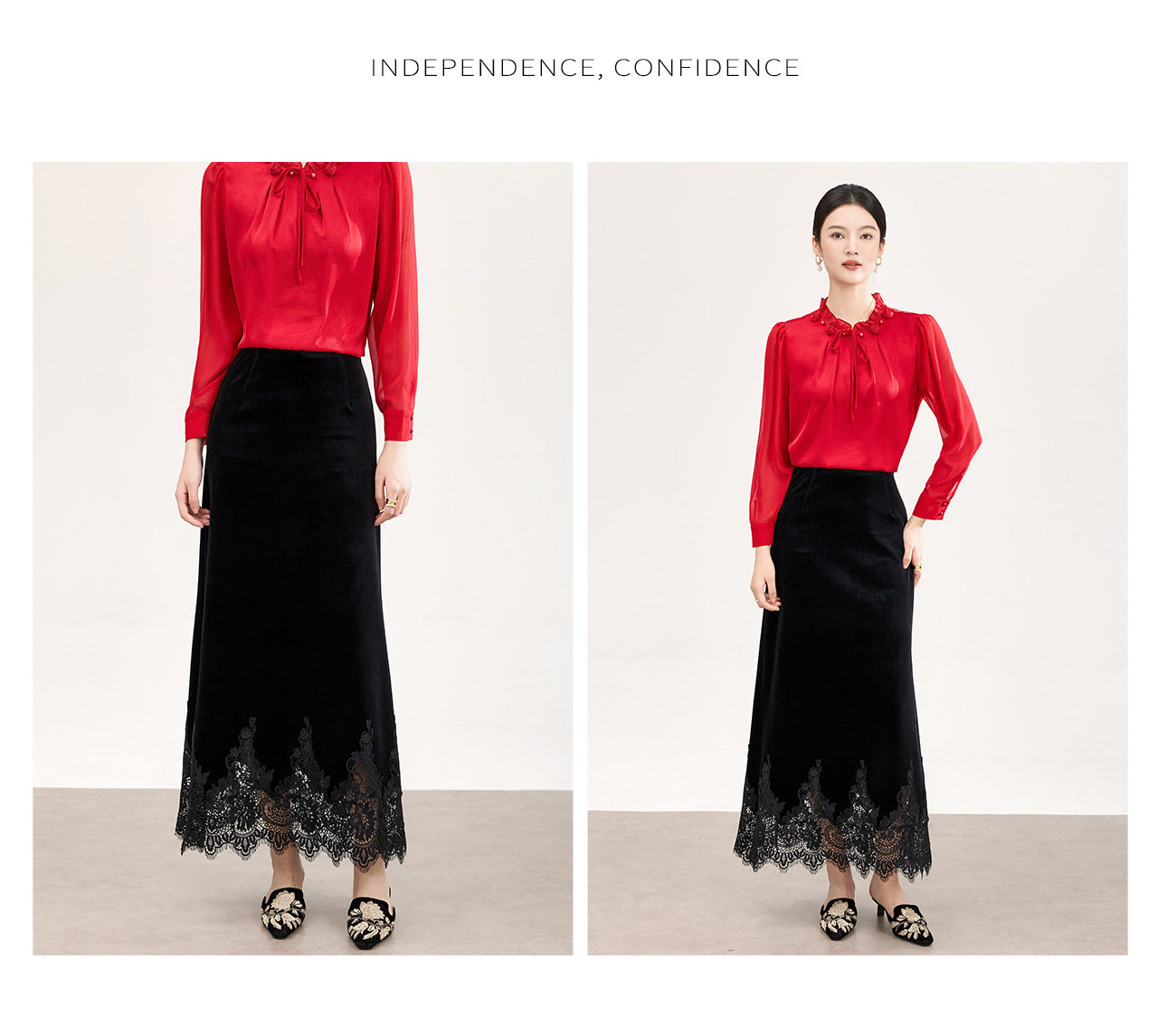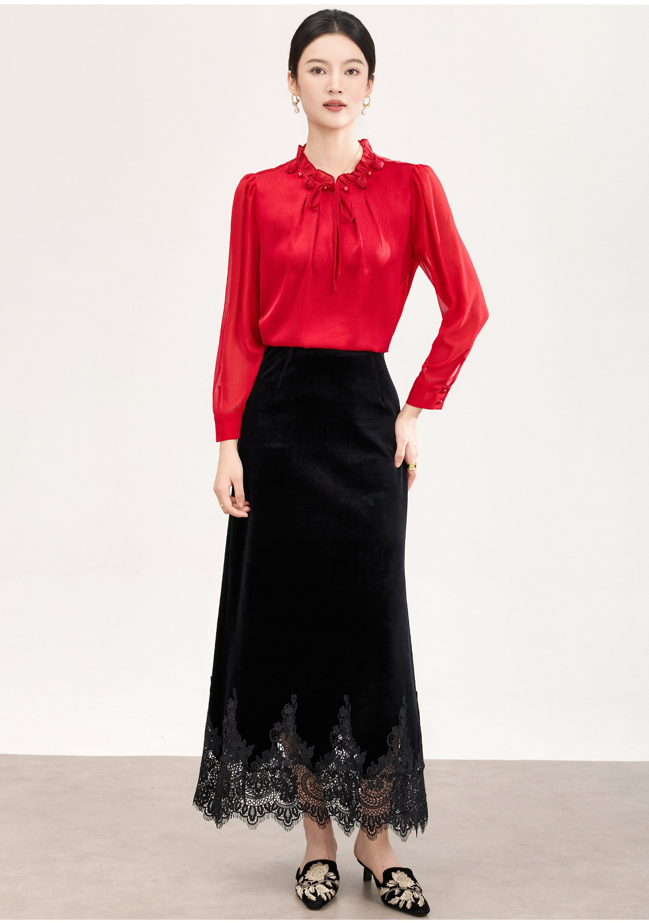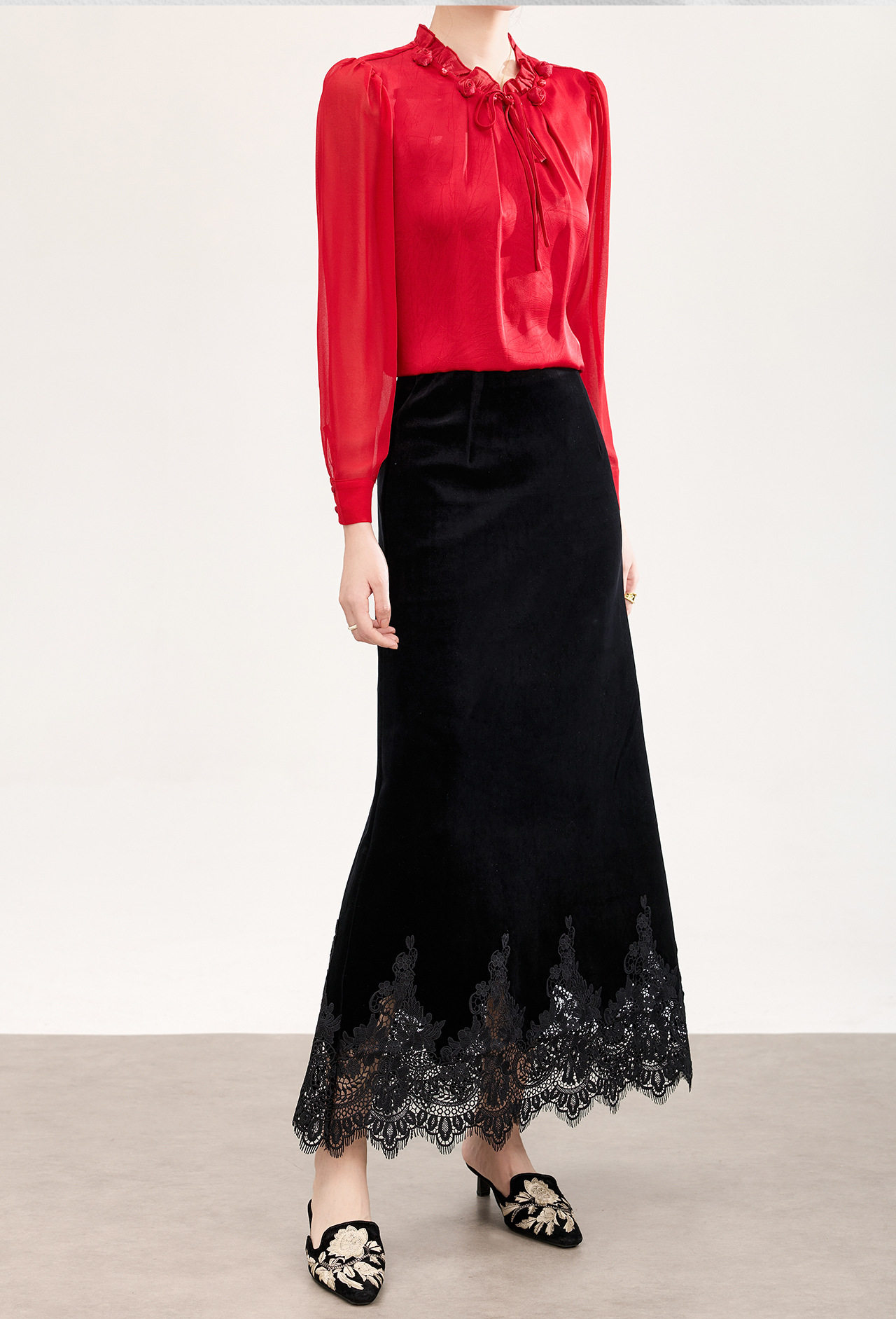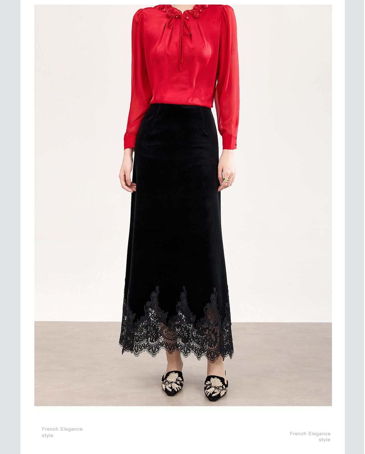 「高货wl」全新升级【铂金会员257/天猫339/差价82】(33548)洛诗琳新中式丝绒半身裙2026春季新款高腰蕾丝刺绣拼接裙