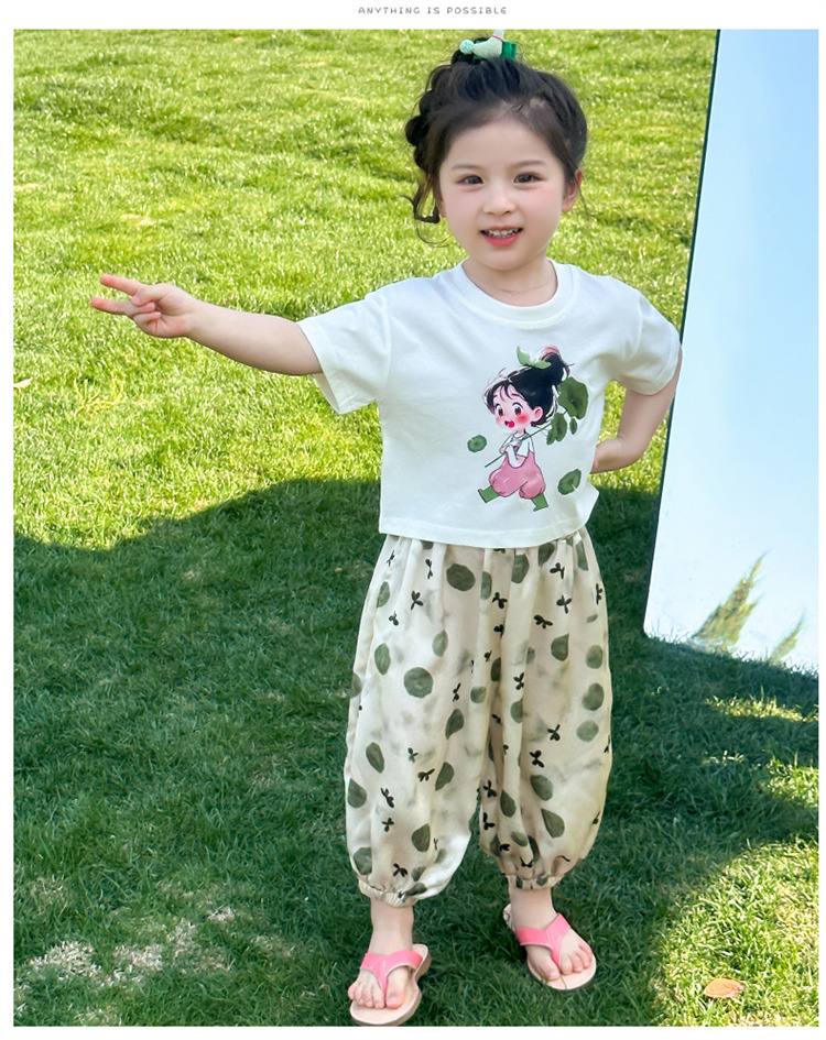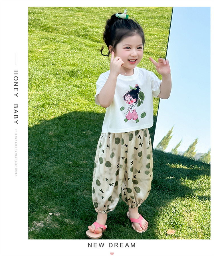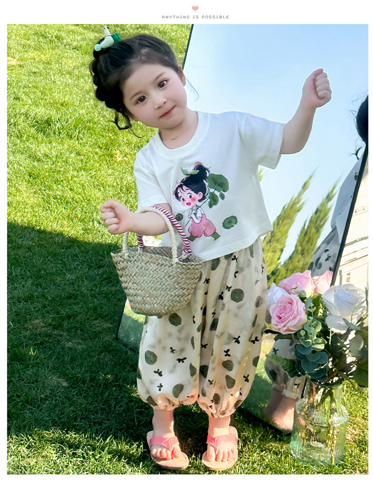 【时尚女孩活力出街,有颜值有腔调!】女童荷叶女孩套装 夏季新款时尚小女孩 洋气两件套中小儿童夏装-QQ