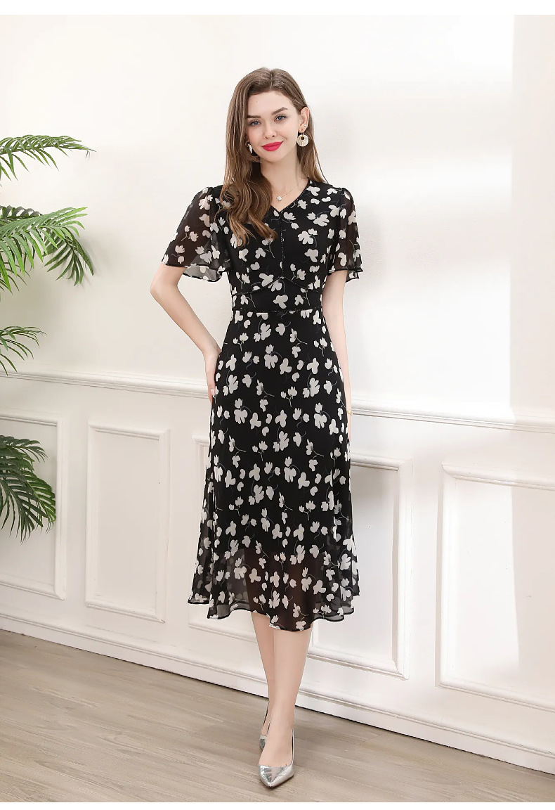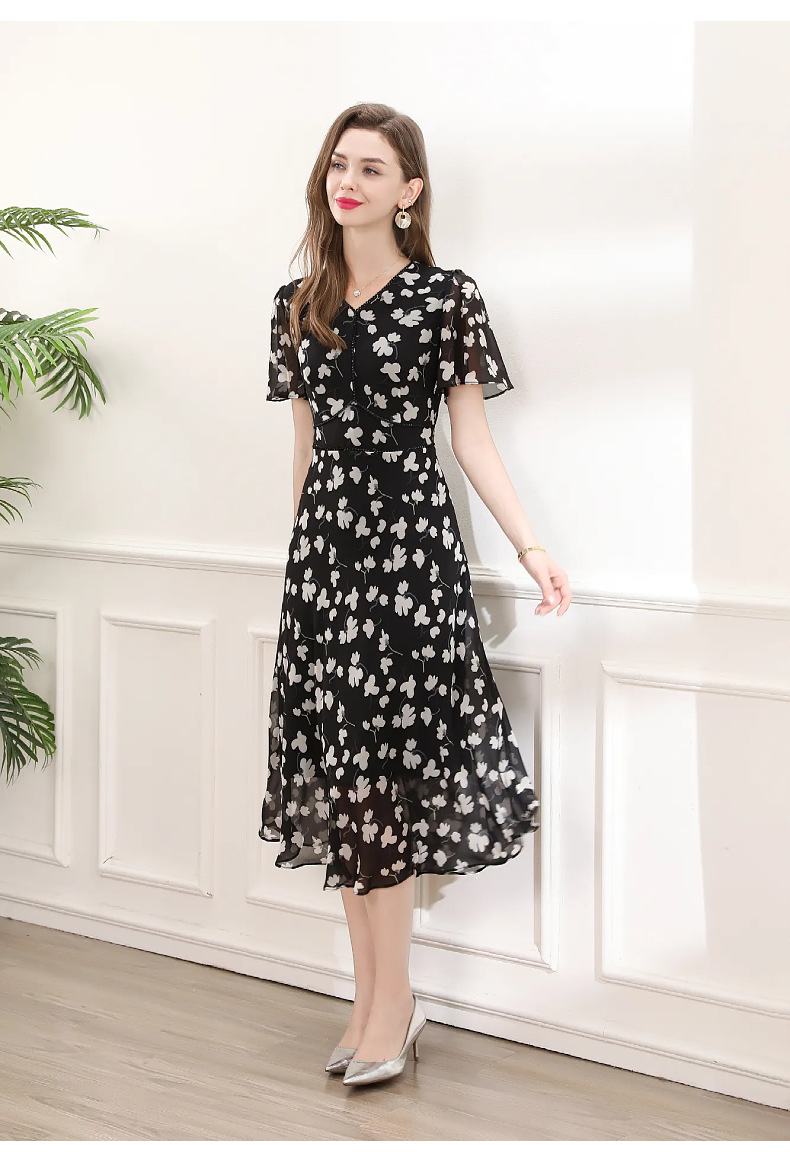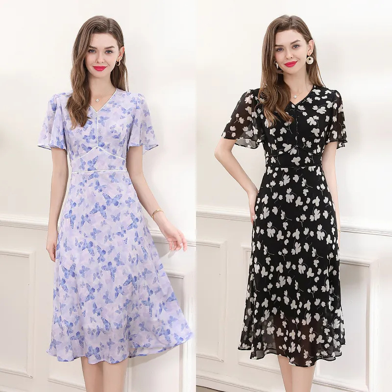 「高货deo」全新升级【铂金会员404/天猫539/差价135】(03120)洛诗琳高级感雪纺连衣裙2025夏季显瘦中长款法式连衣裙