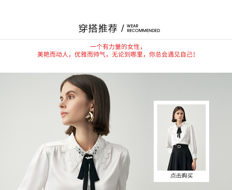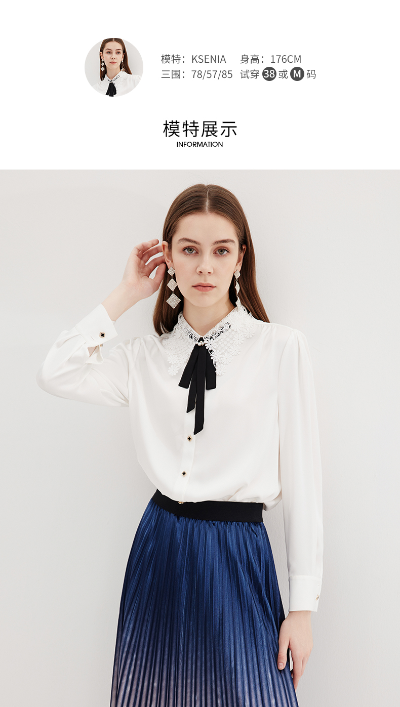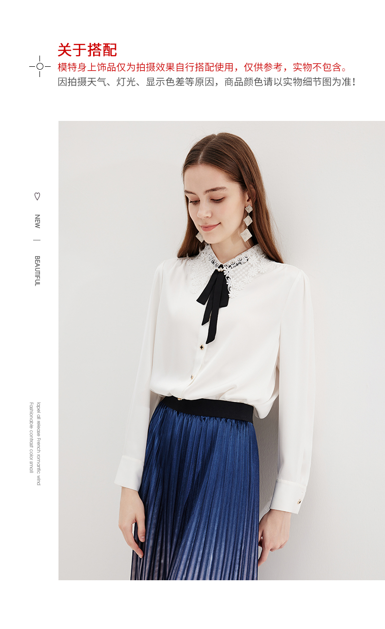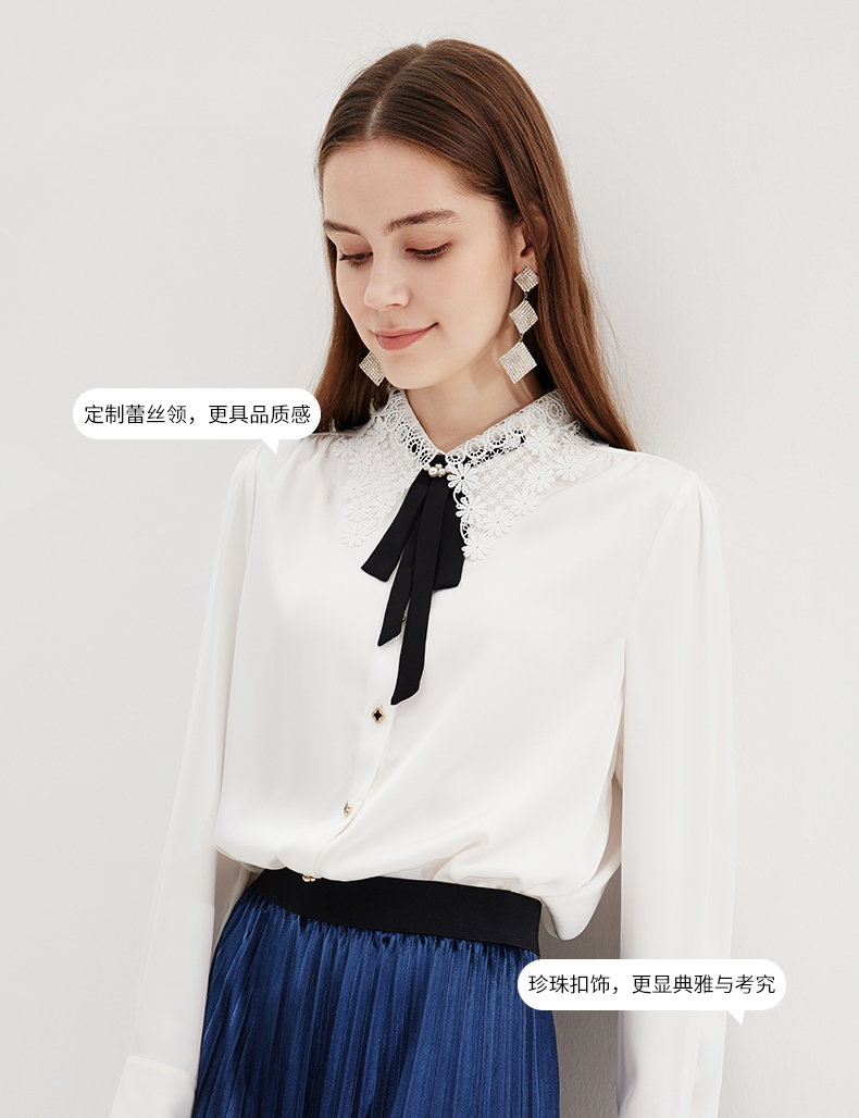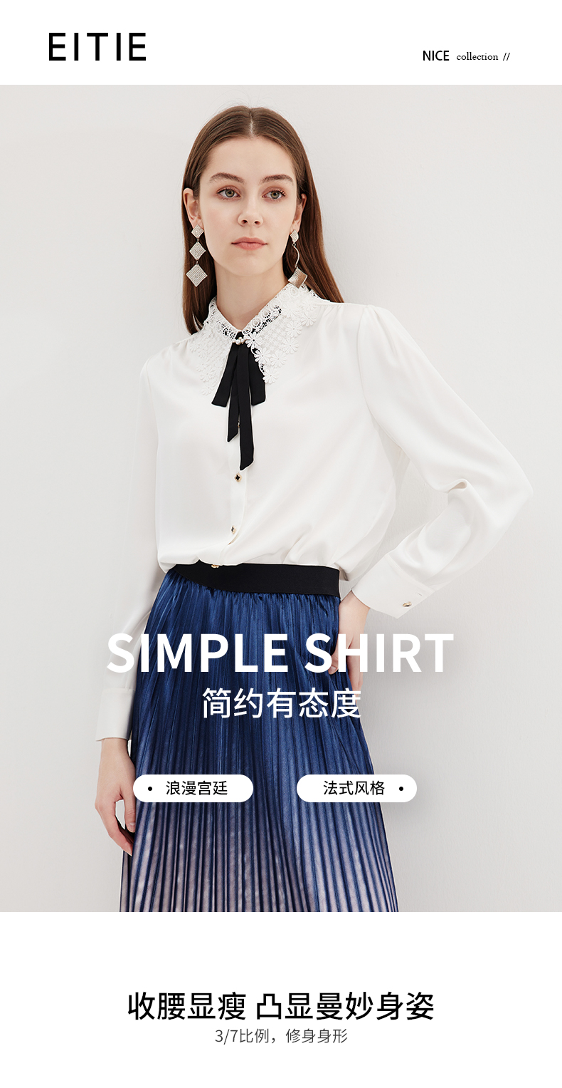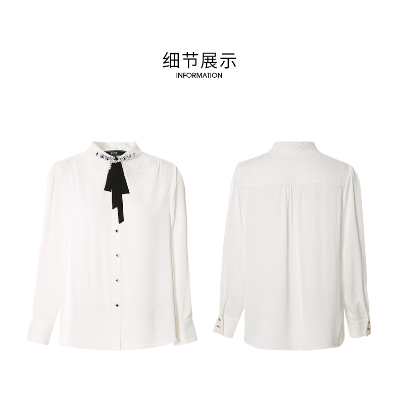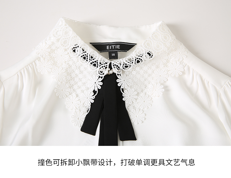 EITIE爱特秋季新款优雅小翻领蕾丝拼接领口衬衣女7109811