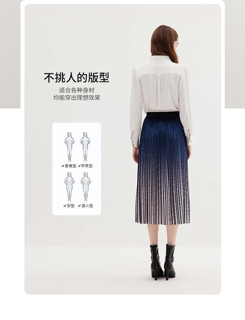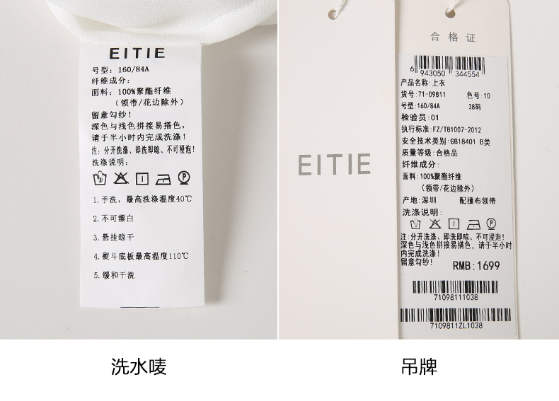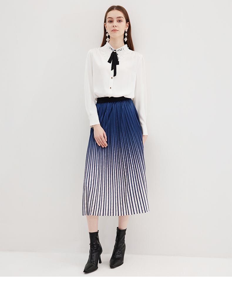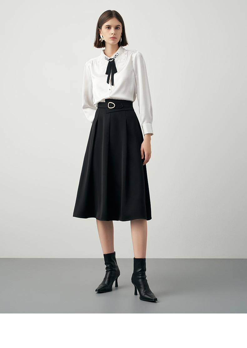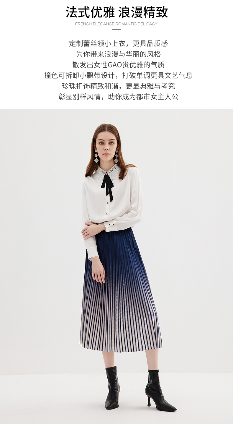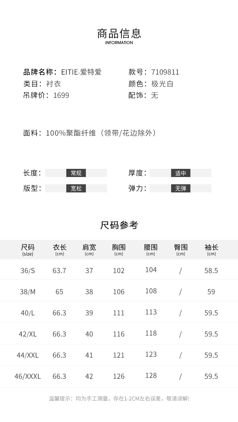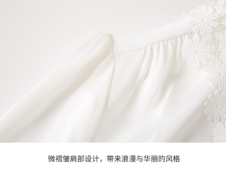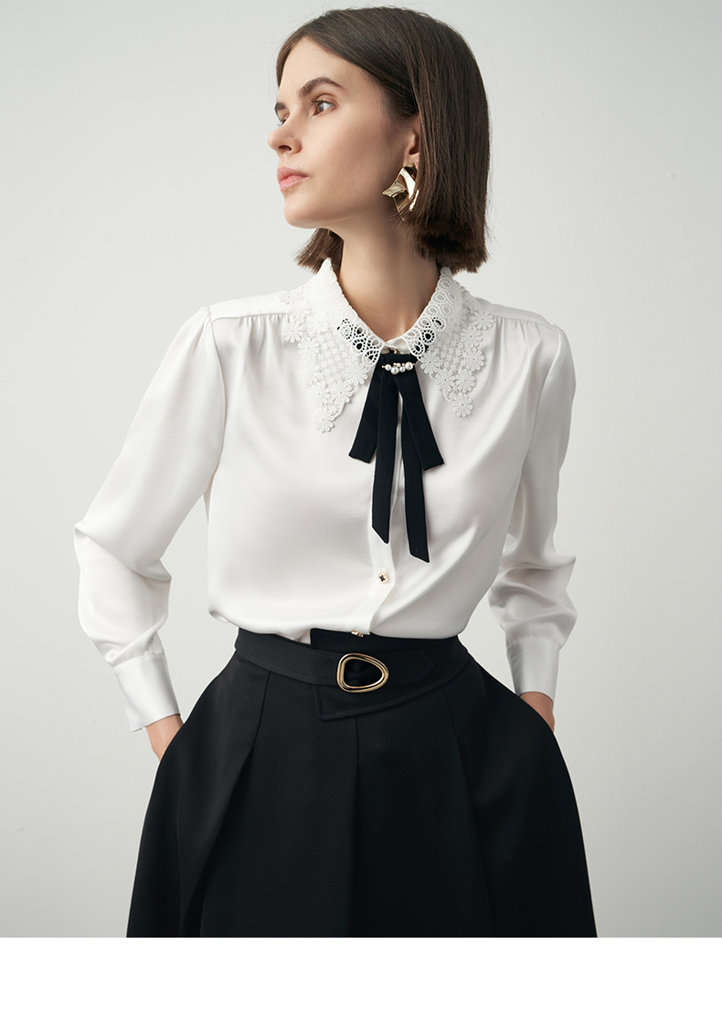 EITIE爱特秋季新款优雅小翻领蕾丝拼接领口衬衣女7109811