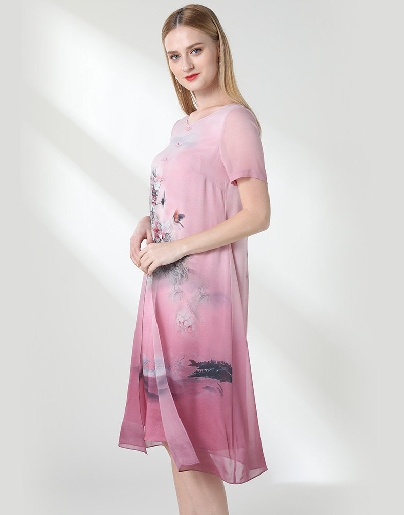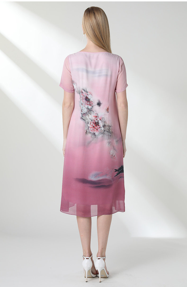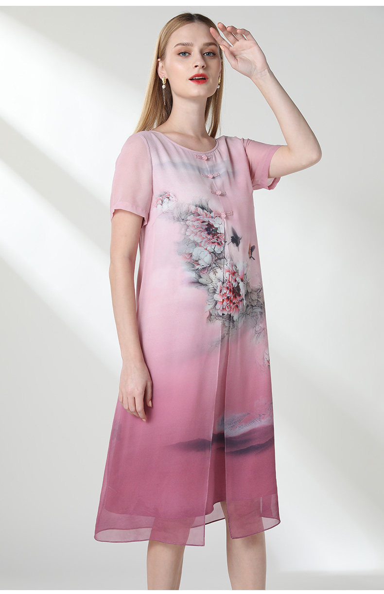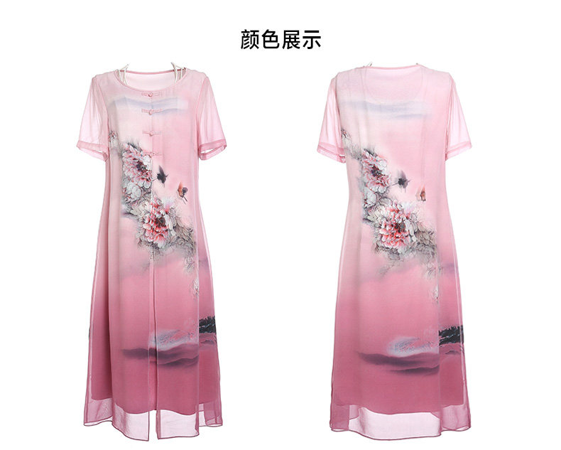 乔万尼夏超仙真丝过膝假两件长裙女气质显瘦桑蚕丝连衣裙EN2E591