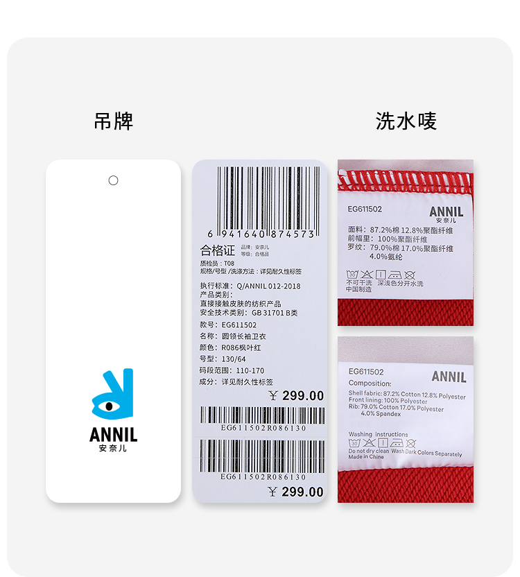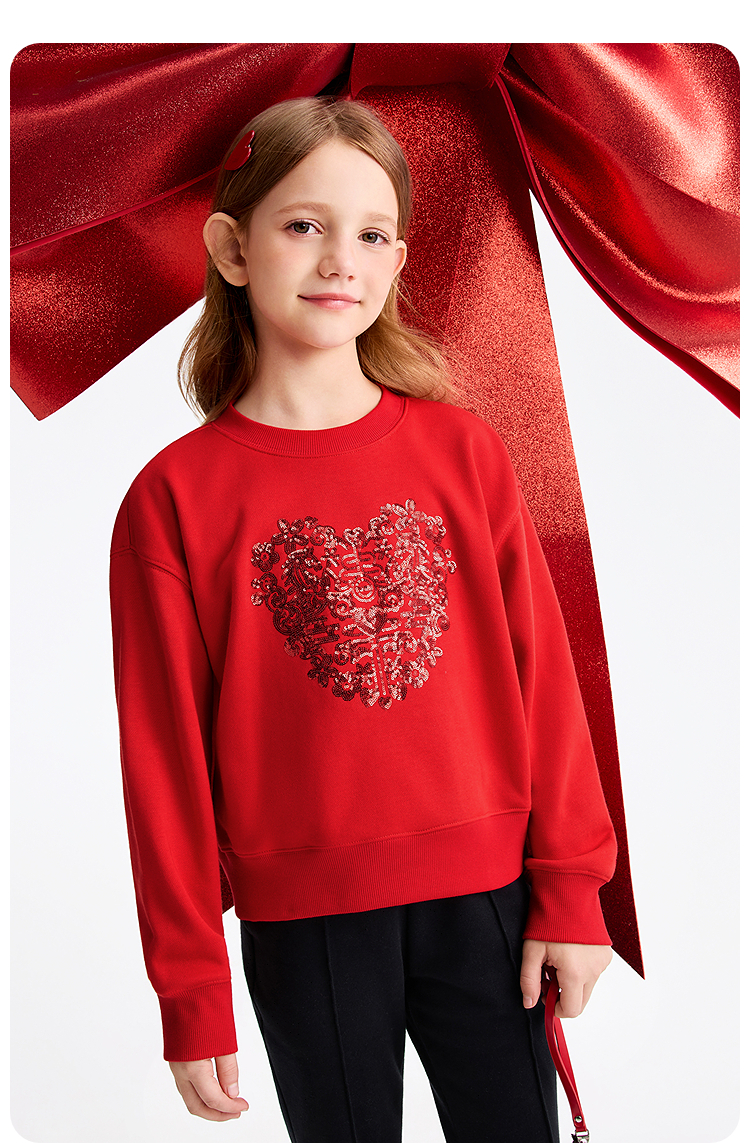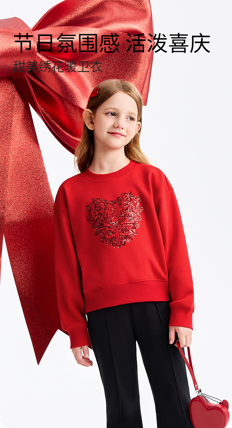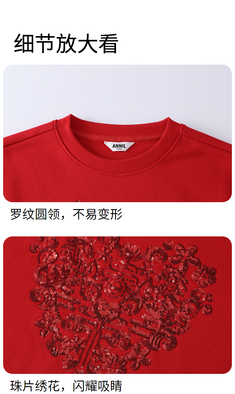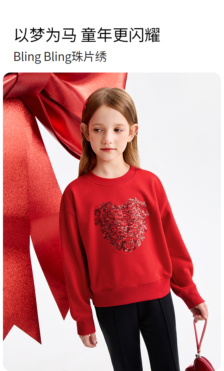 【新年波】女童圆领长袖卫衣春季新款安奈儿童装EG611502